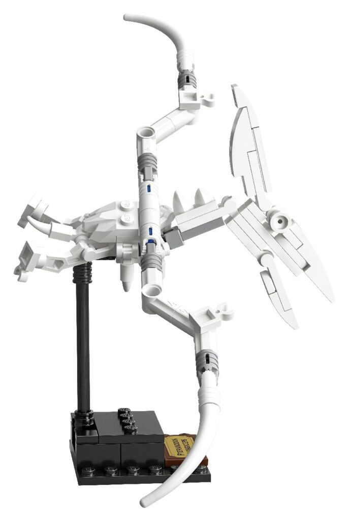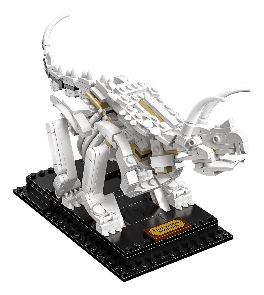 - A wonderfully detailed dinosaur fossils set featuring buildable, posable, 1:32 scale toy models of Tyrannosaurus rex, Triceratops and Pteranodon skeletons, each with display stands to create LEGO® style natural history museum exhibits.