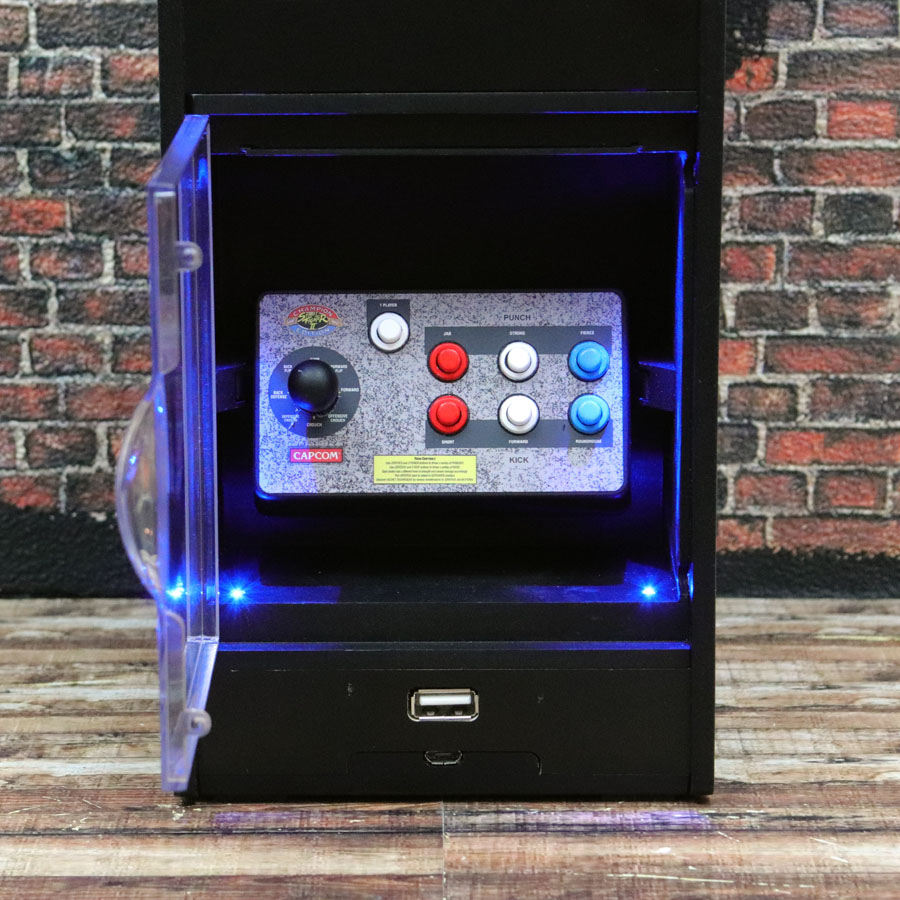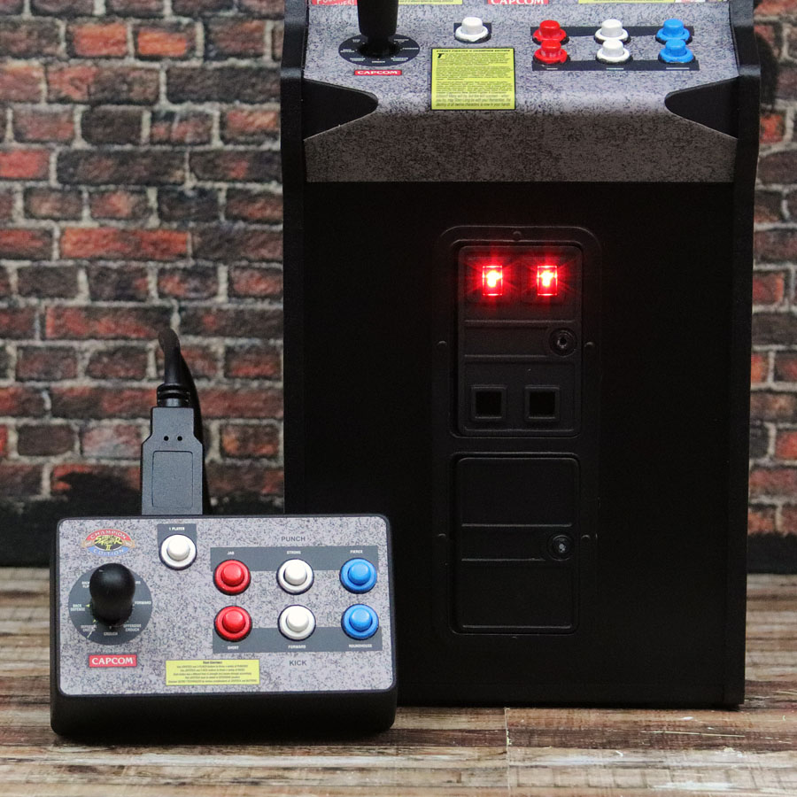 This 1/6-scale arcade cabinet fully licensed by Capcom, also includes Super Street Fighter II: Turbo and a USB Mini Fight Stick for two-player action!