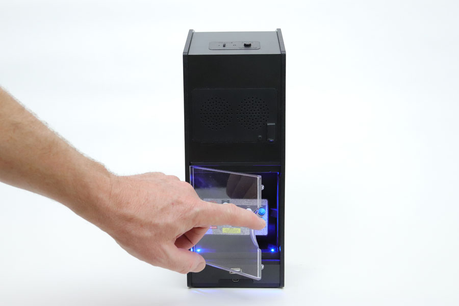 - Illuminated Mini Fight Stick rear storage compartment with display window