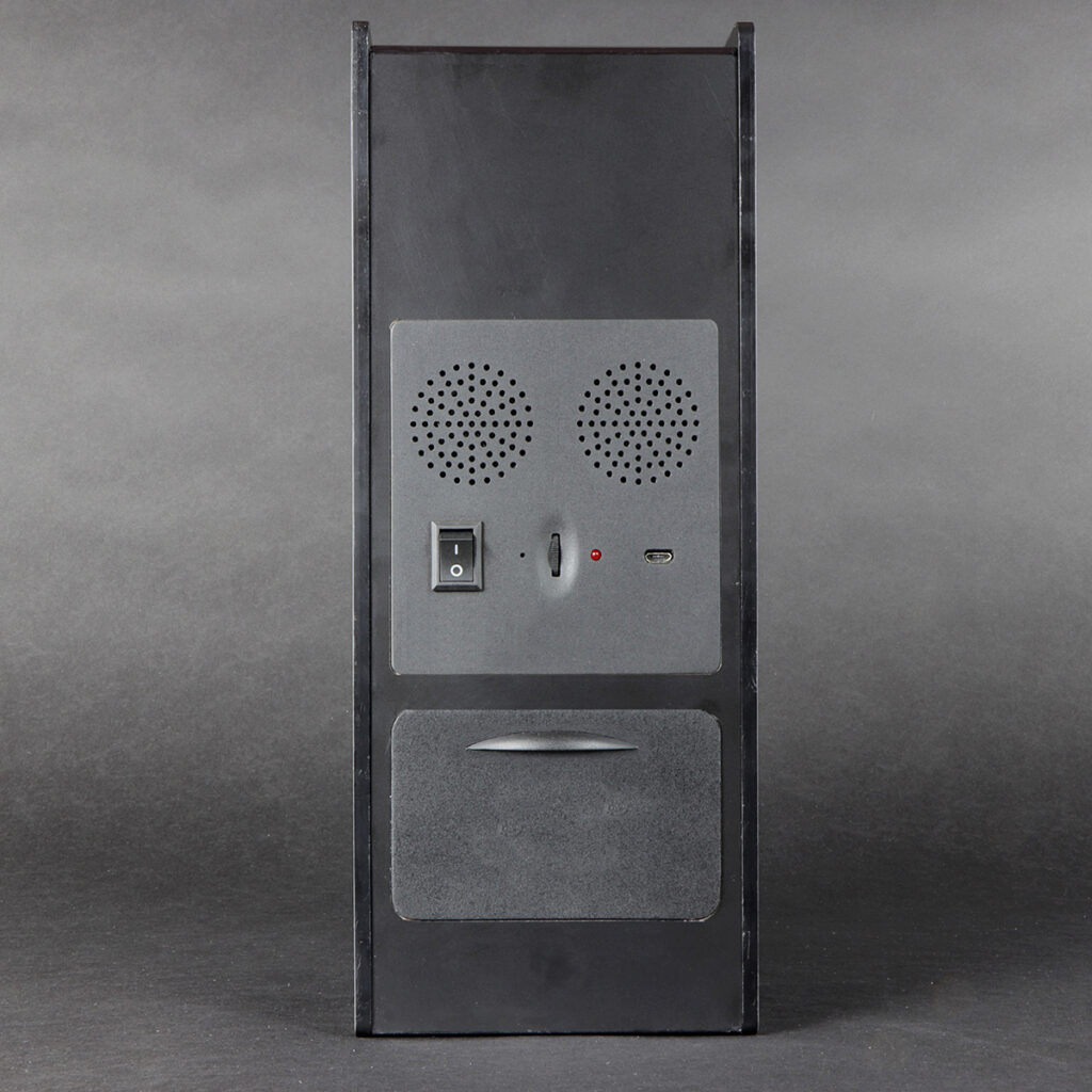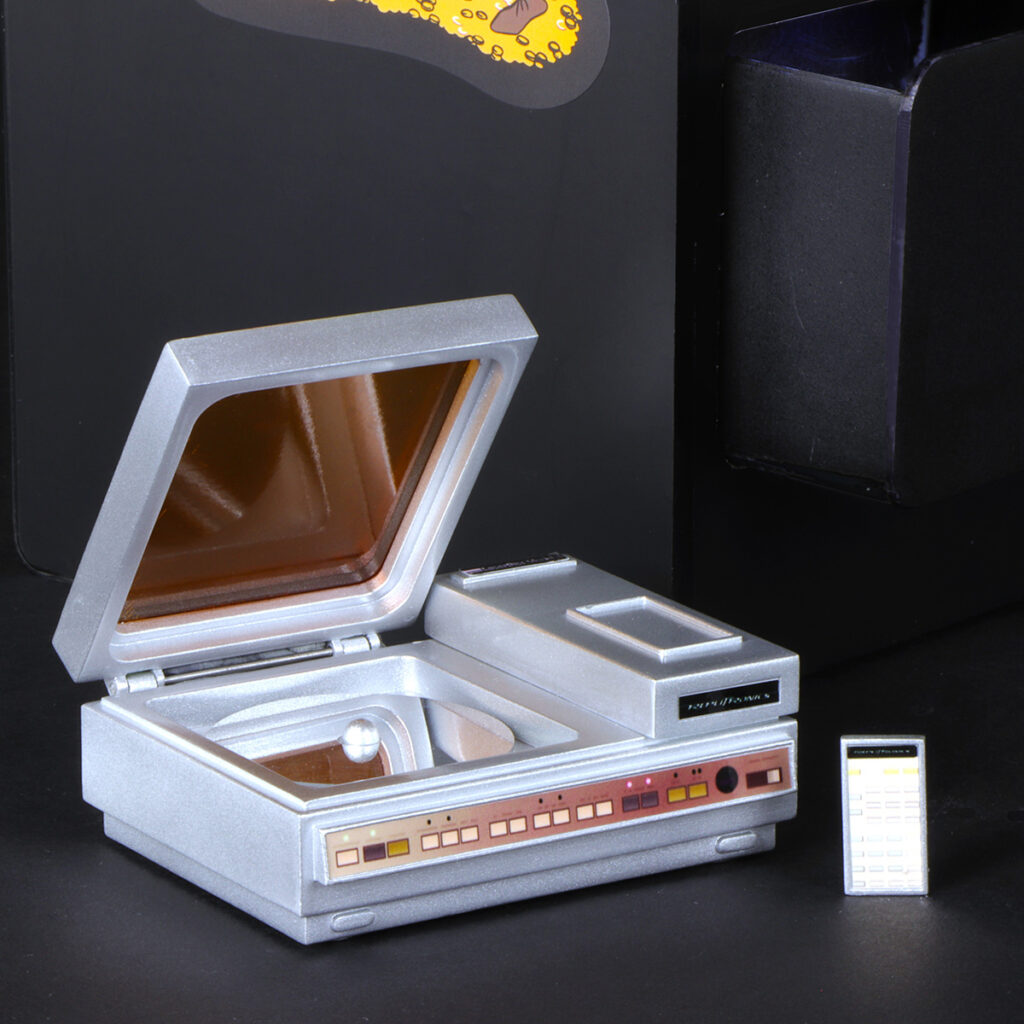 - Illuminated rear storage drawer with mini Laserdisc player replica