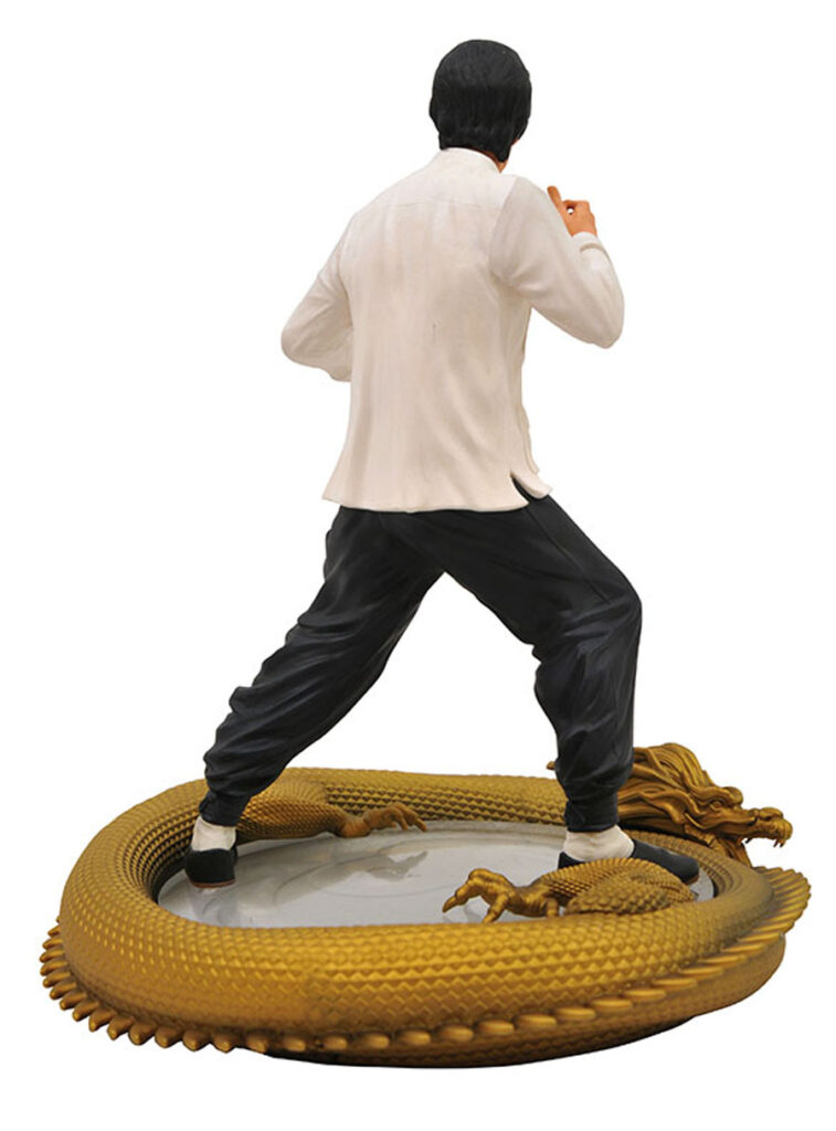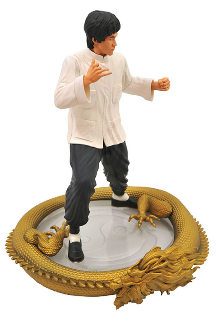 A Diamond Select Toys release! This approximately 11-inch statue of Bruce Lee celebrates his 80th birthday in 2020. Depicting Bruce in his trademark white shirt, standing on a Taijitu (yin-yang) symbol with a dragon coiled around the base, this resin statue is limited to an edition of 3,000, and comes packaged with a numbered certificate of authenticity. Designed by Yuri Tming, sculpted by Erick Sosa. (Item #NOV192329, SRP: $150.00)