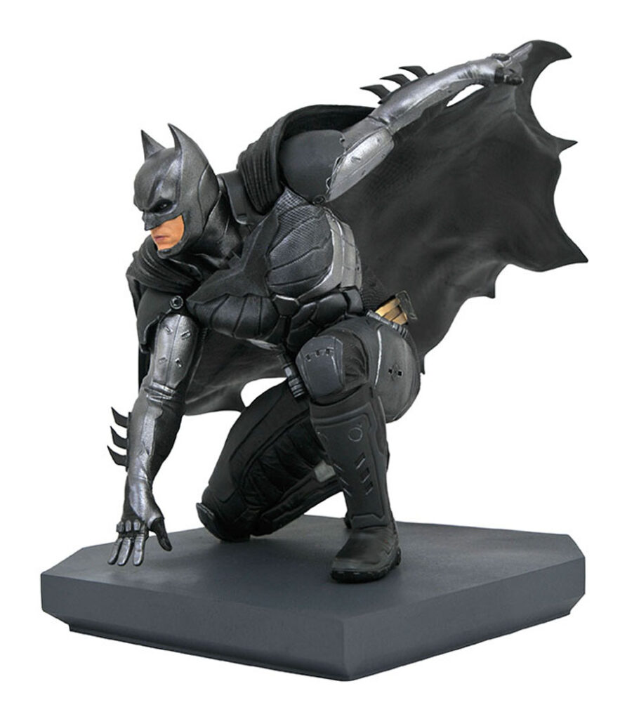 A Diamond Select Toys release! This 1:8 scale PVC diorama of Batman is based on his appearance in the game Injustice 2, and shows him striking a superhero landing in his pursuit of evil. Measuring approximately 6 inches tall, this sculpture is made of high-grade plastic and features detailed sculpting and paint applications. Packaged in a full-color window box. Designed by Shawn Knapp, sculpted by Rocco Tartamella. Formerly a GameStop exclusive. (Item #NOV192337, SRP: $49.99)