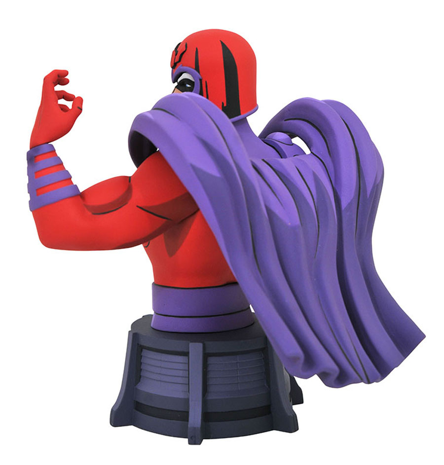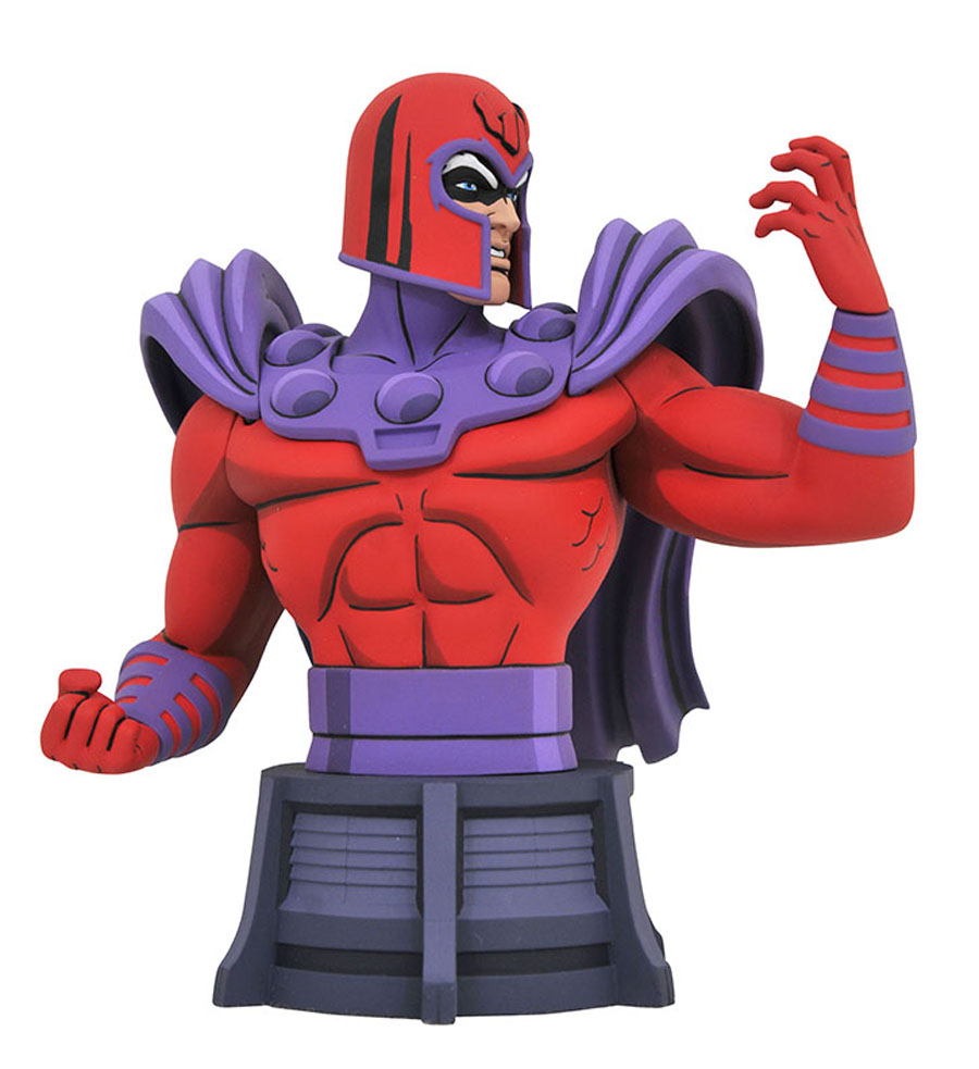 A Diamond Select Toys release! The groundbreaking animated-style line of X-Men busts continues with the Master of Magnetism himself, Magneto! Looking like he just stepped off the screen from the hit cartoon, Magneto raises a fist in this 6-inch resin bust, featuring detailed sculpting and animation-inspired paint details. Limited to only 3,000 pieces, it comes packaged in a full-color window box with a certificate of authenticity. (Item #NOV192333, SRP: $59.99)