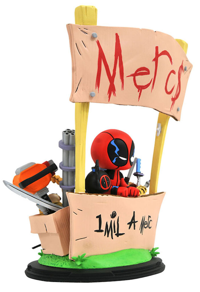 A Diamond Select Toys release! Mercs for sale! The Merc with a Mouth has never looked cuter than in this new statue from the artisans at Gentle Giant Ltd. Based on Skottie Young’s cover to Deadpool and the Mercs for Money #1, Deadpool runs a stand selling mercs (and lots of weapons) in this limited-edition diorama. Approximately 8 inches tall, it comes packaged in a full-color box with a certificate of authenticity. Sculpted by Gentle Giant Studios. (Item #NOV192332, SRP: $125.00)