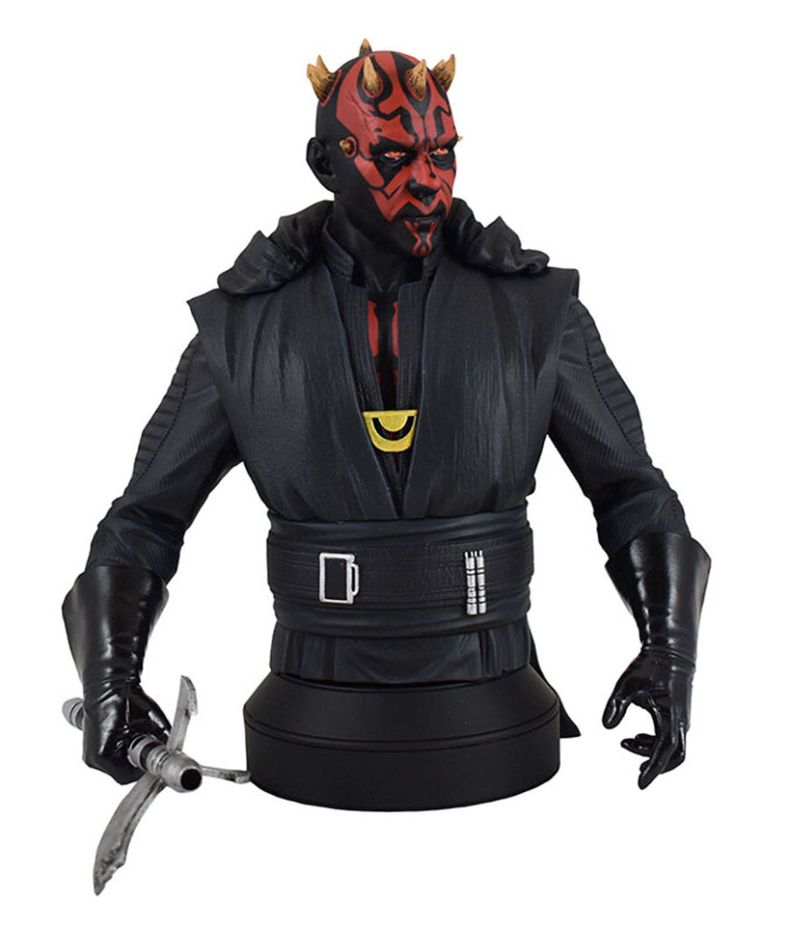 A Diamond Select Toys release! Based on his appearance in Solo: A Star Wars Story, this 1/6 scale bust of Darth Maul depicts him in his outfit from the film, holding his trademark double-bladed lightsaber. The crime boss of the Crimson Dawn cartel measures approximately 6 inches tall and comes in a full-color box with a certificate of authenticity. Designed by the Silva Bros., sculpted by Rocco Tartamella. (Item #NOV192325, SRP: $120.00)