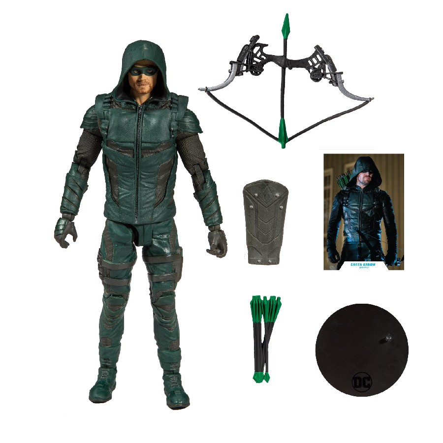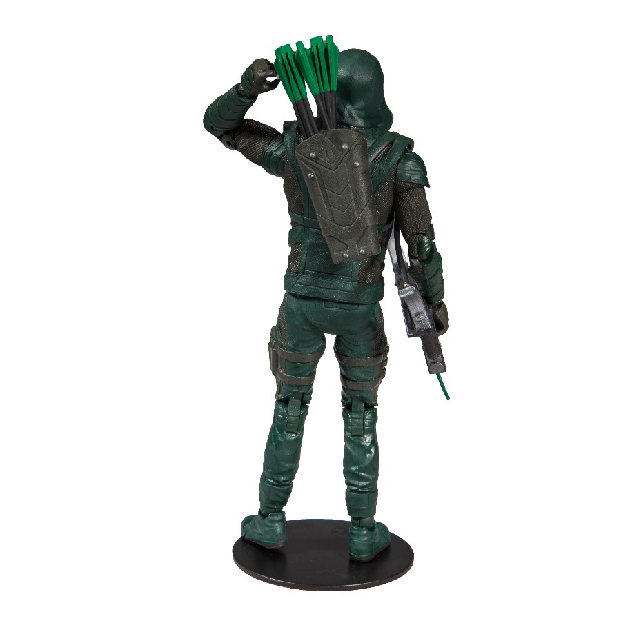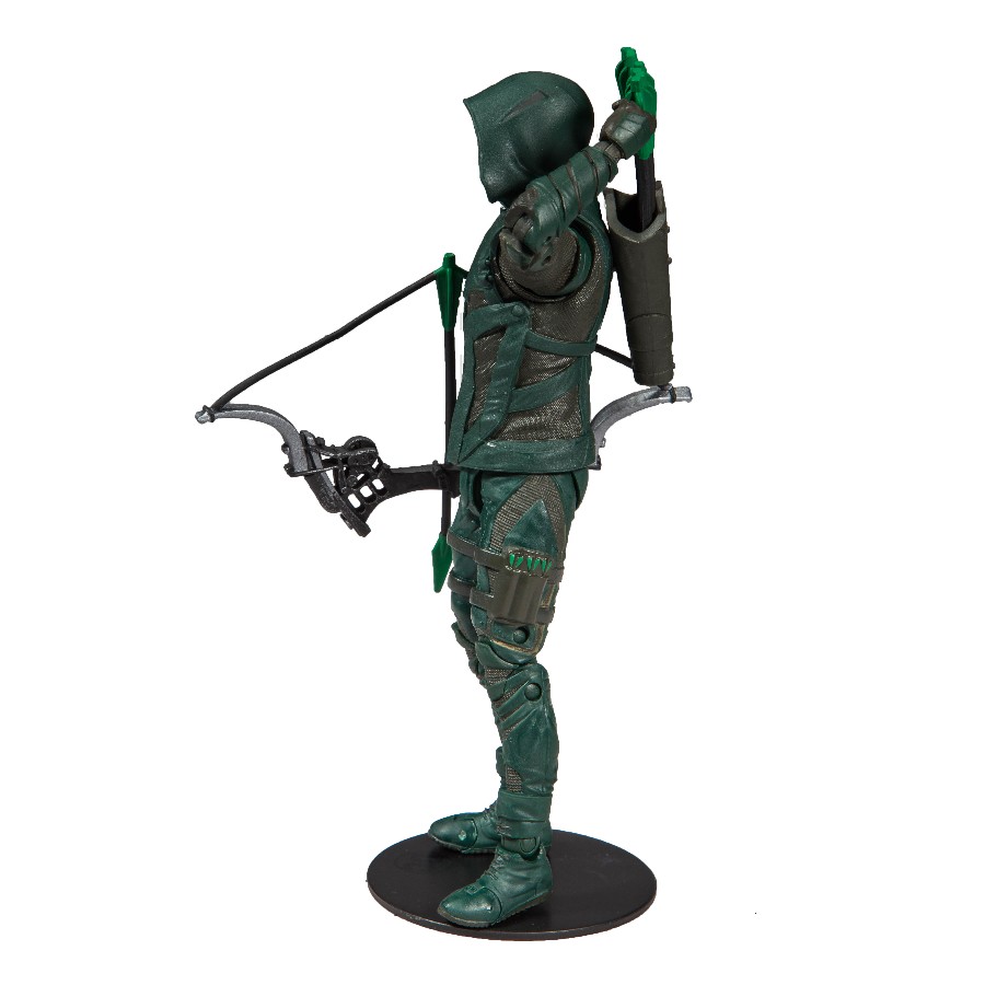 - Green Arrow’s accessories include a bow with knocked arrow and quiver with bundled arrows