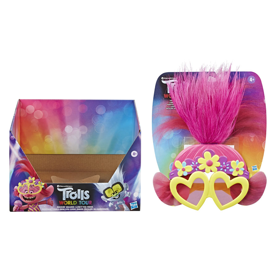 In Trolls World Tour, the sequel to DreamWorks Trolls, Queen Poppy and her friends go on an epic, Trolls-tastic journey to save all music. Now kids can pretend to be they’re favorite characters from the movie by putting on these fun character sunglasses. With lenses in fun shapes and a wild tuft of hair, these roleplay shades are inspired by Poppy’s and Tiny Diamond’s looks in the movie. Kids can recreate favorite scenes or make up their own new adventures, and they can be part of a Trolls Halloween costume, too! Available at most major toy retailers nationwide.