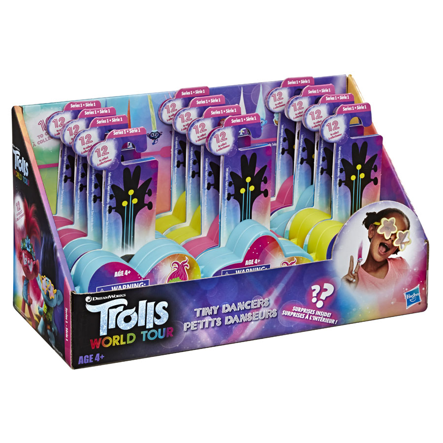 Tiny Dancers are little figures that shimmy and shake! These collectable toys take favorite characters from Trolls World Tour and turns them into fun collectables that kids can play with or wear! Series 1 features 12 different fun, stylized characters inspired by the movie Trolls World Tour, and each package is a surprise! You don’t know which one you’ll get until you open it. Maybe it’s the V.I.T. (Very Important Troll)! Attach the figure to the included ring and barrette and make them dance. Wear them everywhere or share with a friend. Kids can collect all the Tiny Dancers. Each sold separately. Subject to availability. Put ’em on and make ’em wiggle! Available at most major toy retailers nationwide.