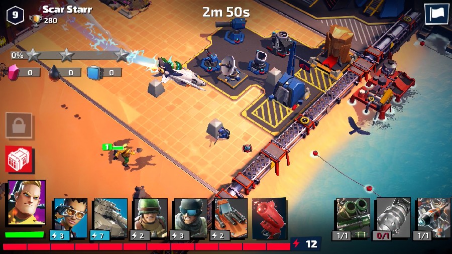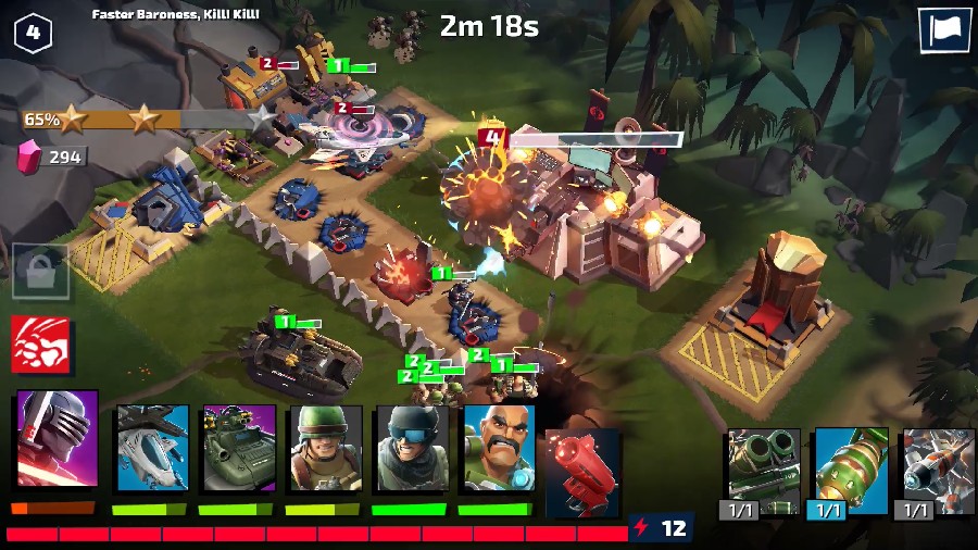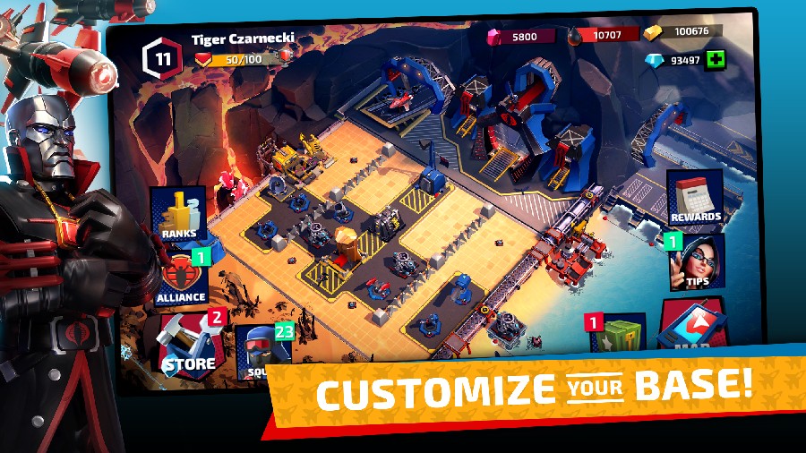 - Equip your Squad and defend your base from land, sea, or air assaults with special defenses, including Turrets, Sea Mines, and Troop Depots.