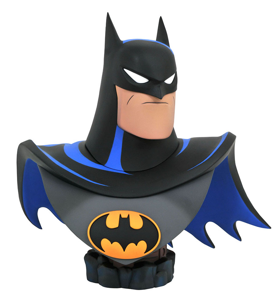 A Diamond Select Toys release! Pay tribute to the Legend of the Dark Knight with this half-scale bust of Batman, as he appeared in Batman: The Animated Series! Part of the Legends in 3D line of busts, this approximately 10-inch portrait is limited to only 1,000 pieces, and comes packaged in a full-color box with a hand-numbered certificate of authenticity. Designed by Joe Allard, sculpted by Varner Studios. (Item #JAN202449, SRP: $200.00)