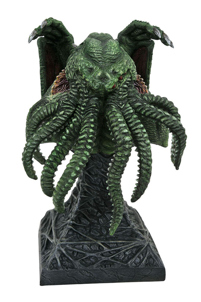 A Diamond Select Toys release! The literary legend is now the latest Legend in 3-D! Part of the Legends in 3D “half-scale” bust line, this approximately 10-inch resin sculpture depicts the tentacled monstrosity as he is described in the works of H.P. Lovecraft. Limited to only 1,000 pieces, it comes packaged in a full-color box with a hand-numbered certificate of authenticity. Designed and sculpted by Eli Livingston. (Item #JAN202458, SRP: $175.00)
