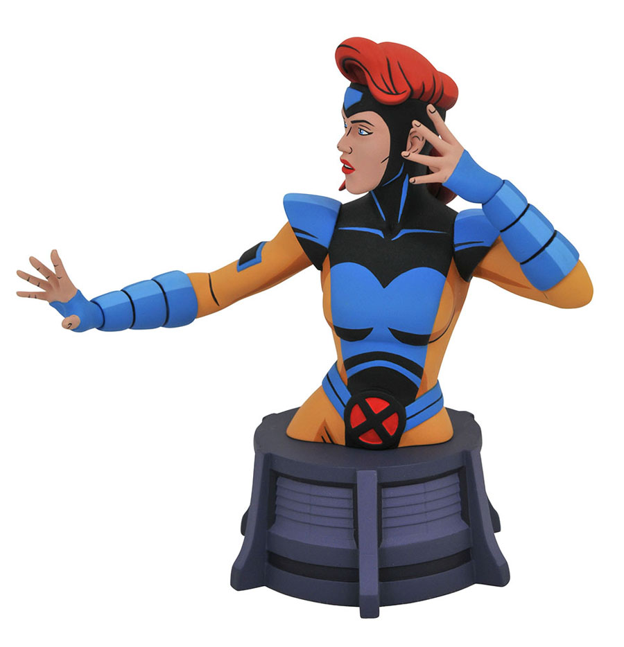 A Diamond Select Toys release! The groundbreaking animated-style line of X-Men busts continues with the X-Men’s resident redhead, Jean Grey! Looking like she just stepped off the screen from the hit cartoon, Jean focuses her telepathic abilities in this 6-inch resin bust, featuring detailed sculpting and animation-inspired paint details. Limited to only 3,000 pieces, it comes packaged in a full-color window box with a certificate of authenticity. Designed by Barry Bradfield, sculpted by Paul Harding. (Item #JAN202454, SRP: $59.99)