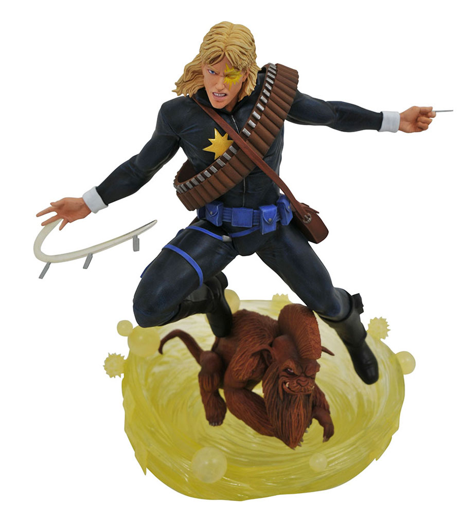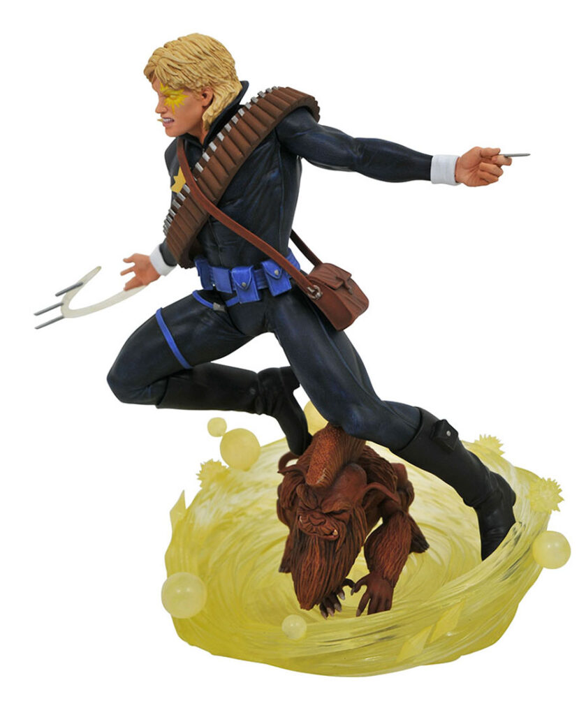 A Diamond Select Toys release! The luckiest man in the Mojoverse has arrived! Sometime X-Men member Longshot unleashes a flurry of throwing blades while leaping over fellow Mojo-World resident Magog in this dynamic diorama. Made of high-quality PVC, it features detailed sculpting and paint applications and comes packaged in a full-color window box. Designed by Caesar, sculpted by Alejandro Pereira. (Item #JAN202455, SRP: $49.99)