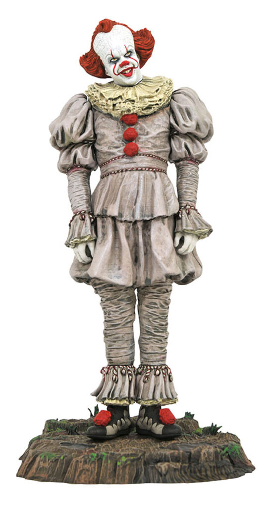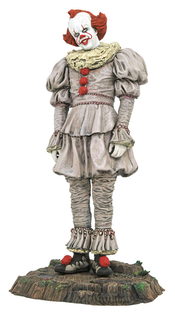 A Diamond Select Toys release! Pennywise is back, and he’s creepier than ever! The star of It Chapter 2, Pennywise the Dancing Clown, lurks in the swamp in this all-new Gallery Diorama. Tilting his head to one side as if sizing you up for a meal, this sculpture is made of high-quality PVC and features detailed sculpting and paint applications. Packaged in a full-color window box. Designed by Caesar, sculpted by Rocco Tartamella. (Item #JAN202457, SRP: $49.99)