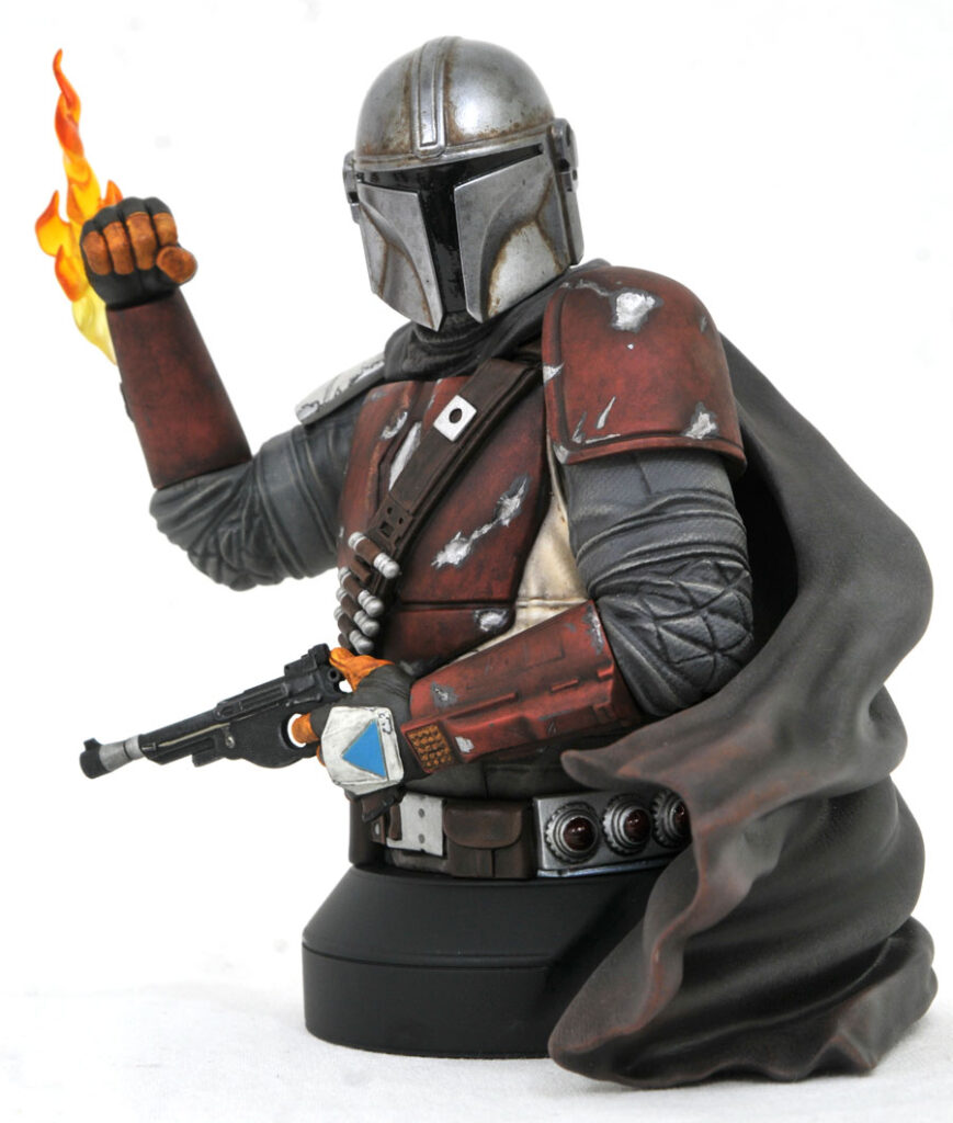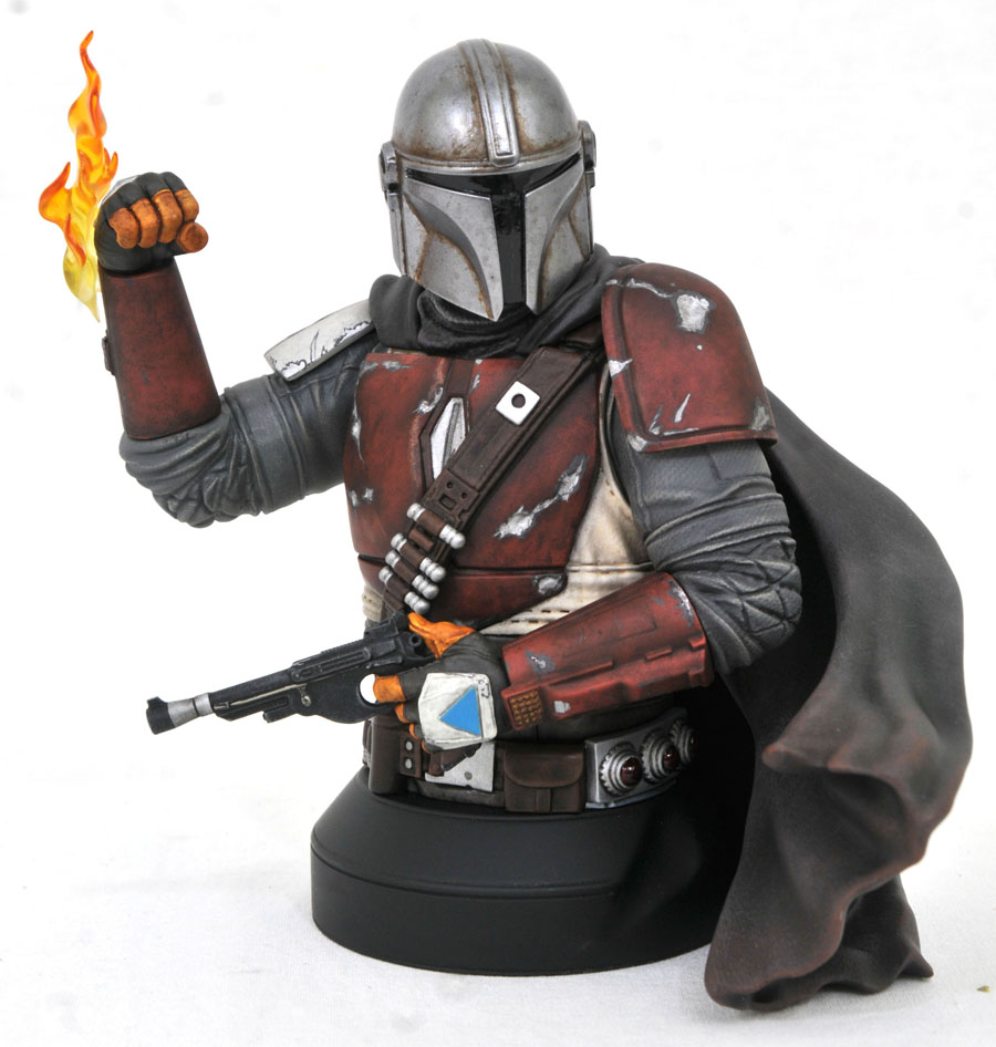 A Gentle Giant Ltd. release! People can’t stop talking about The Mandalorian on Disney+, and now the highly requested mini-bust is here! Measuring approximately 6 inches tall, this 1/6 scale bust depicts the bounty hunter with blaster and flamethrower at the ready, and features detailed sculpting and paint applications. Bust comes packaged in a full-color box with a numbered certificate of authenticity. It is limited to 3,000 pieces. NOTE: This item is currently only accessible for pre-order by Premier Guild members; any remaining inventory will go on sale to standard customers on January 31.