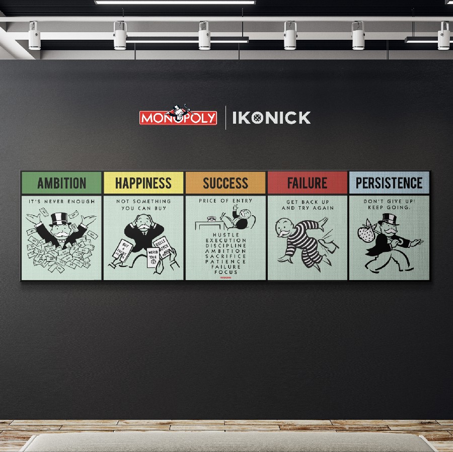 - Los Angeles-based IKONICK , a leader in canvas art, will be printing a limited quantity of 85 MONOPOLY-inspired art pieces available exclusively at www.IKONICK.com. Available starting March 2, 2020, the 60 x 20-inch canvas print will bring modern motivational words to the timeless images of MONOPOLY and will be signed by the artist and IKONICK co-founder Jeff Cole.