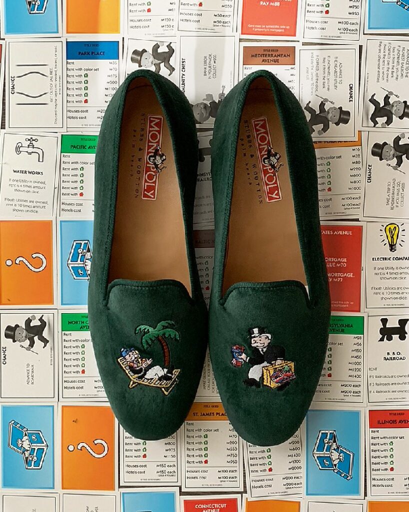 - Stubbs and Wootton will give their fashion forward handmade velvet smoking slippers a MONOPOLY treatment with six original designs set to launch on February 28, 2020. The evening slippers will be available at Stubbs & Wootton’s showrooms in Palm Beach and New York, and online at www.stubbsandwootton.com.