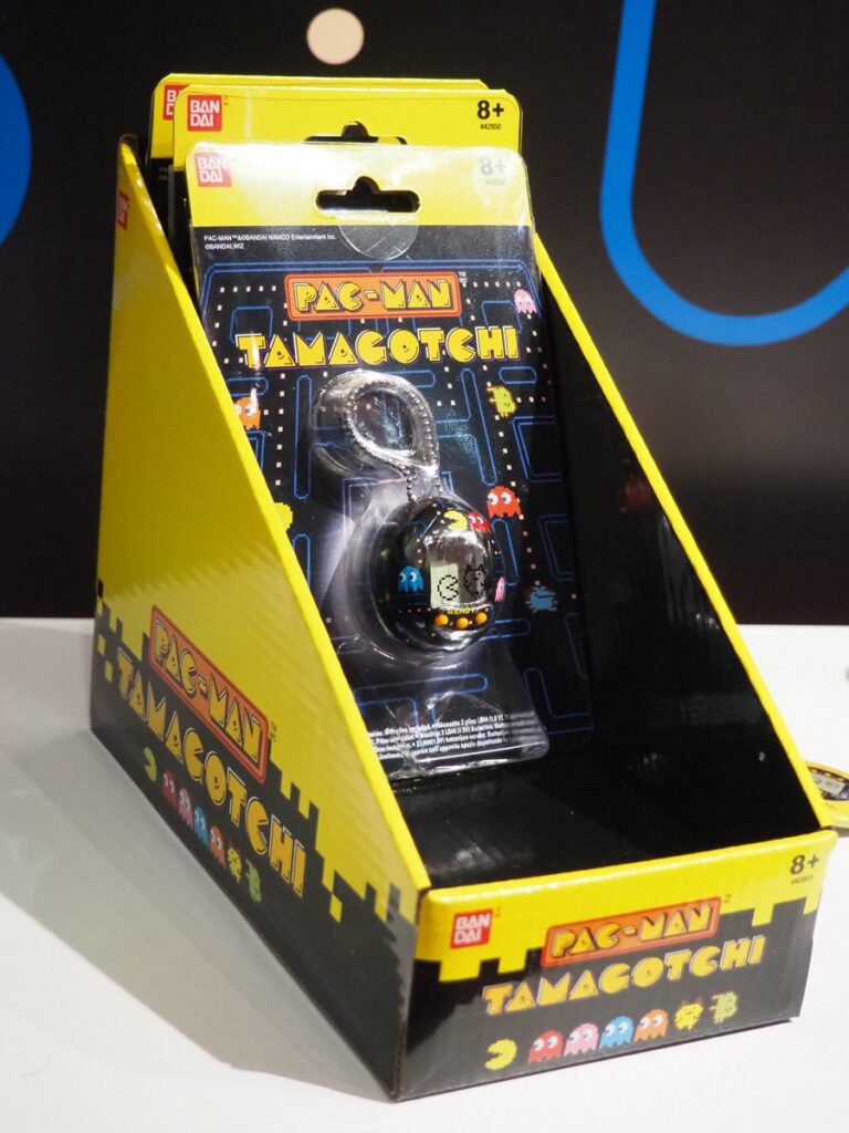 The Bandai America booth was home to a celebration for Pac-Man’s 40th anniversary. Among the products celebrating Pac-Man was the classic plug-n-play video game system and a new Pac-Man edition of the Tamogotchi.