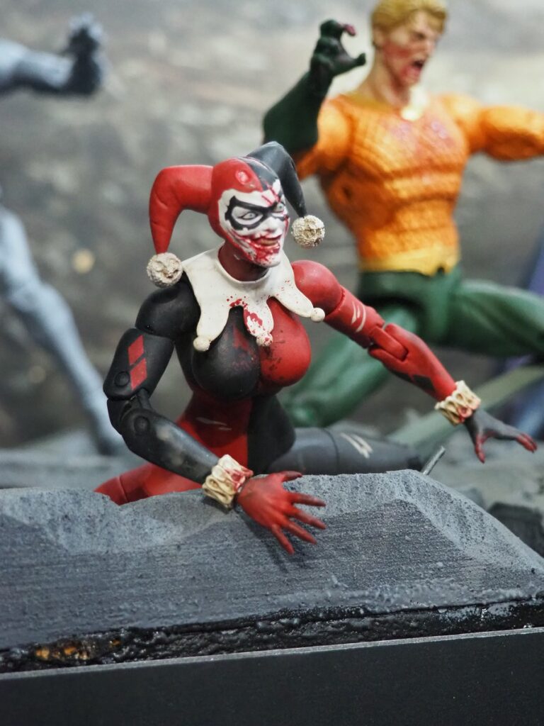 Batman B&W, Joker and Harley Quinn Red & Black Statues
