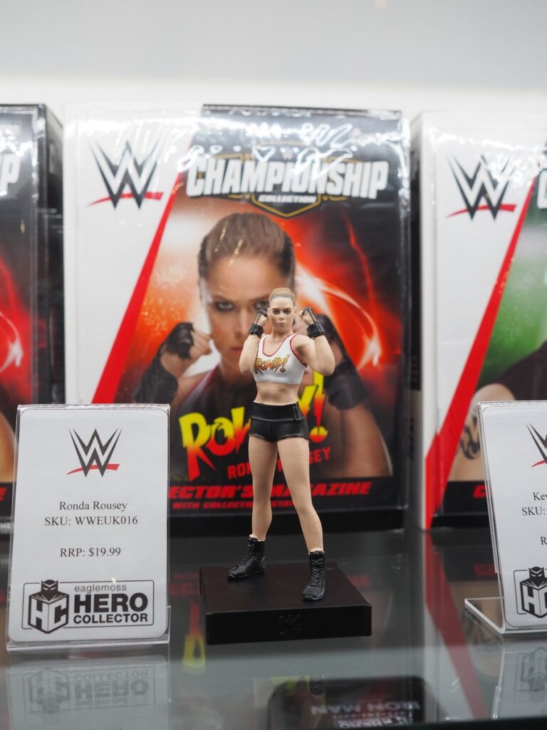 Eaglemoss Hero Collector may be best known in the US for their highly detailed scale replicas of Star Trek ships but their offerings go well beyond starships. From wrestlers to Battlestar Galactica, see their toy fair booth in the galleries below.