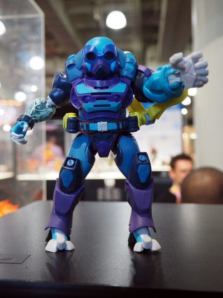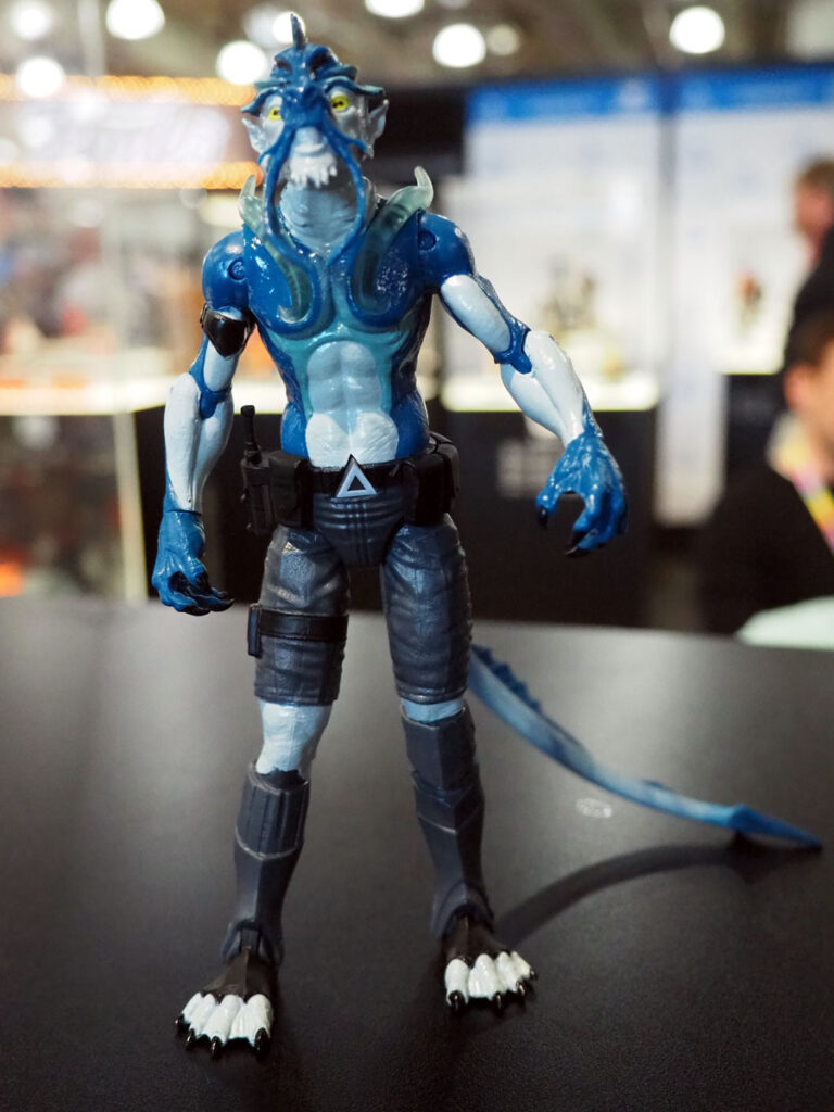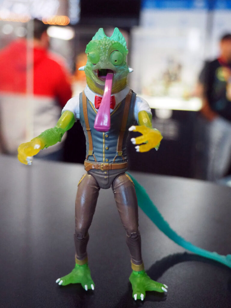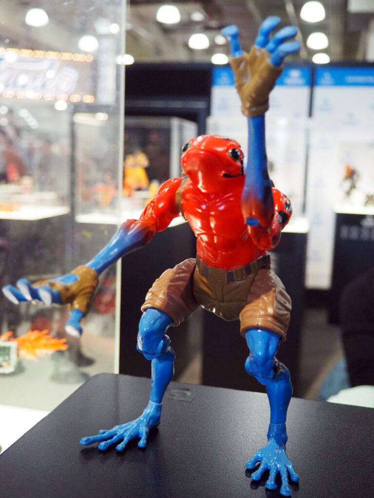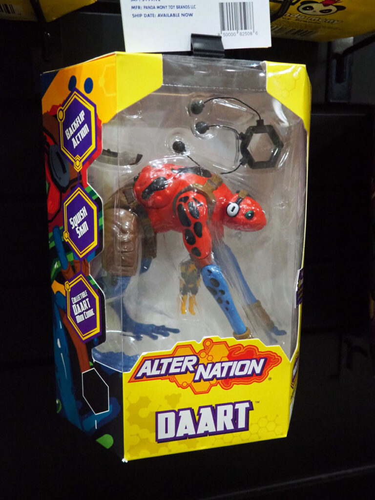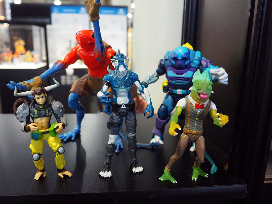 The toys in the line are roughly 6″ scale and feature quality sculpts, deco and many feature an action feature…which doesn’t interfere with the quality of the toy. As an example, Sham has a sticky tongue and articulated eyes which move with a wheel on his back and Daart can do frog-like leaps with his spring action legs.