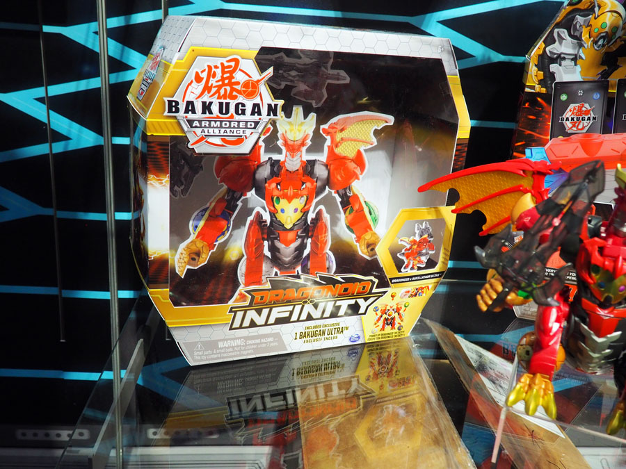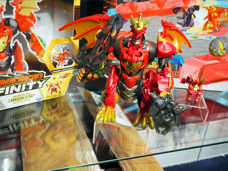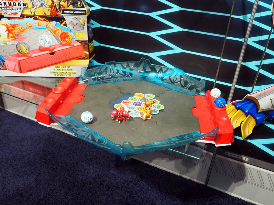 Outside of DC figures, two other lines caught our eye during our booth tour. Bakugan is getting a cool addition to it’s game play with magnetic ‘add-on’ weapons that click right into place and a new deluxe battle arena.