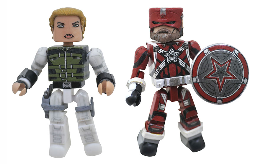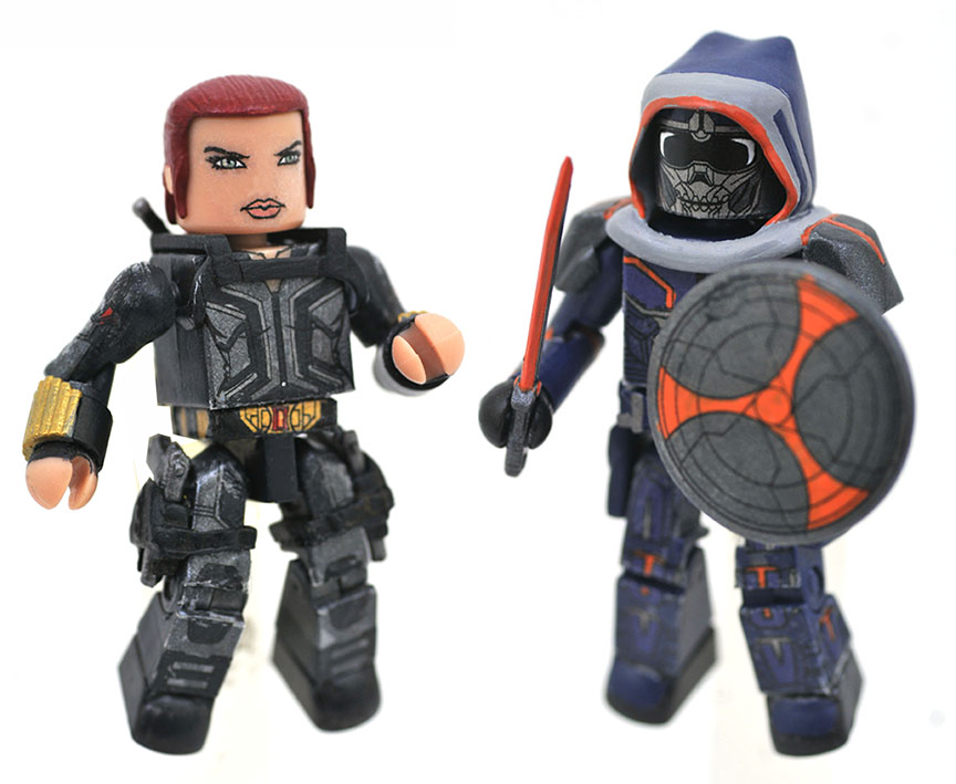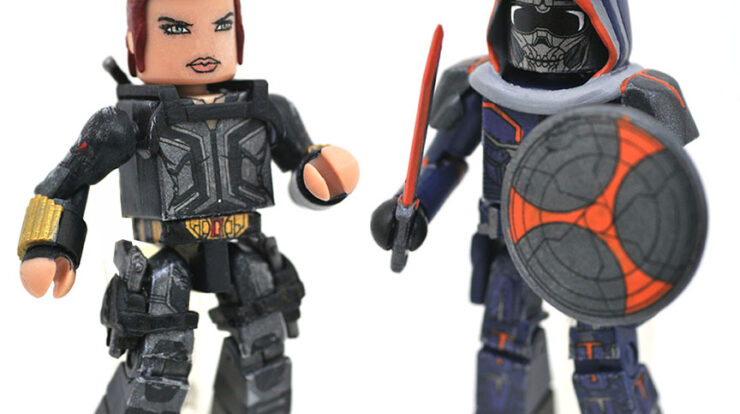 Two Walgreens-exclusive two-packs of Marvel Minimates capture the main characters of the film in 2-inch mini-figure form. Black Widow (with pistol) comes packaged with Taskmaster, with sword and shield accessories. Yelena (with pistol and battel staff) comes packaged with Red Guardian, with shield and alternate maskless hairpiece accessories.