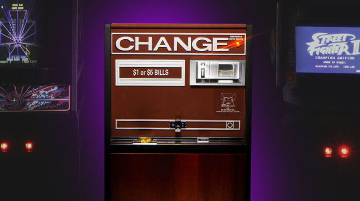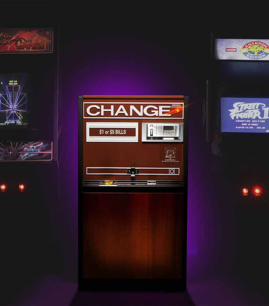 The RepliTronics USB Charge Machine is a fully-functional 6-port USB wall charging station built into a miniaturized vintage arcade change machine replica, and looks great with New Wave Toys’ RepliCade line of fully-playable 1/6-scale arcade cabinets.