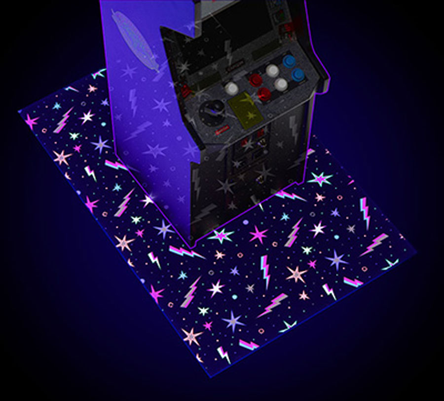 Also released yesterday is the RepliCade UV Base Pad which features arcade carpet inspired graphics with silk screened UV reactive ink in 1:6 scale on a soft fiber surface, with neoprene core & anti-slip rubber base.