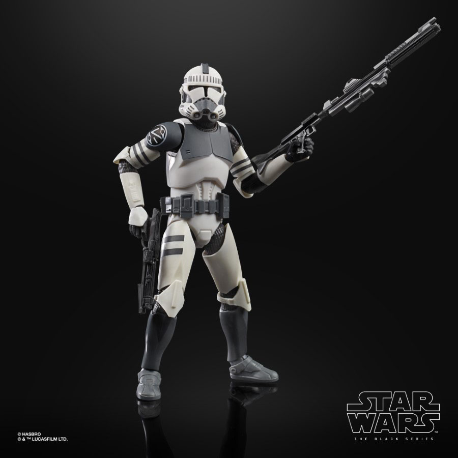 Fans and collectors can imagine scenes from the STAR WARS Galaxy with this STAR WARS: THE BLACK SERIES 6-INCH CLONE TROOPER (KAMINO) Figure, inspired by the STAR WARS: THE CLONE WARS series and featuring quality detail and multiple points of articulation. STAR WARS fans and collectors can display this highly poseable (4 fully articulated limbs) figure, featuring premium deco, in their action figure and vehicle collection. Includes figure and 2 accessories. Available at most major retailers.