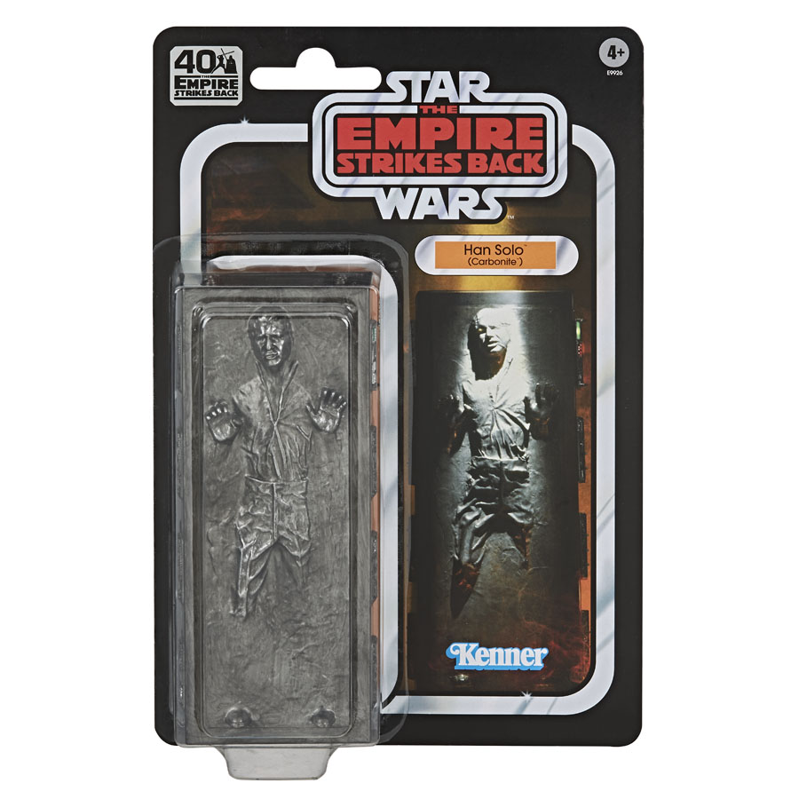 Celebrate 40 years of STAR WARS: THE EMPIRE STRIKES BACK with this STAR WARS: THE BLACK SERIES 6-INCH HAN SOLO (CARBONITE) Figure, featuring 1980s-inspired design and premium deco. STAR WARS fans and collectors can display this figure in their action figure and vehicle collection. Includes HAN SOLO IN CARBONITE and stand. Available for pre-order exclusively at Amazon.