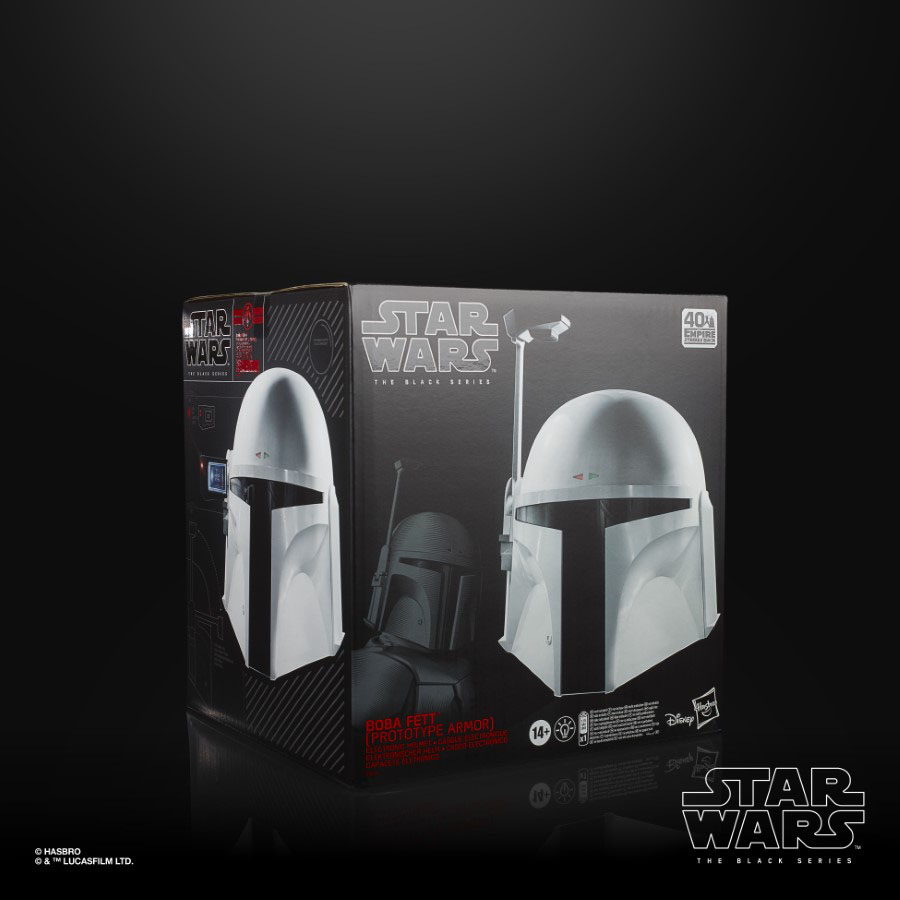 Commemorate 40 years of STAR WARS: THE EMPIRE STRIKES BACK with the STAR WARS: THE BLACK SERIES BOBA FETT (PROTOTYPE ARMOR) ELECTRONIC HELMET! This roleplay item with premium detail and design is a great addition to any STAR WARS fan’s collection. Featuring a flip-down rangefinder with flashing LED lights and an illuminated heads-up display (HUD), fans can imagine what it was like for the famous bounty hunter to suit up for galactic action in his all-white “Super Strormtrooper” armor! Includes helmet and instructions. Requires 1 1.5v AAA battery, not included. Available for pre-order at GameStop, Best Buy, Entertainment Earth, Dorkside Toys, Books-A-Million, Hasbro Pulse, and more.