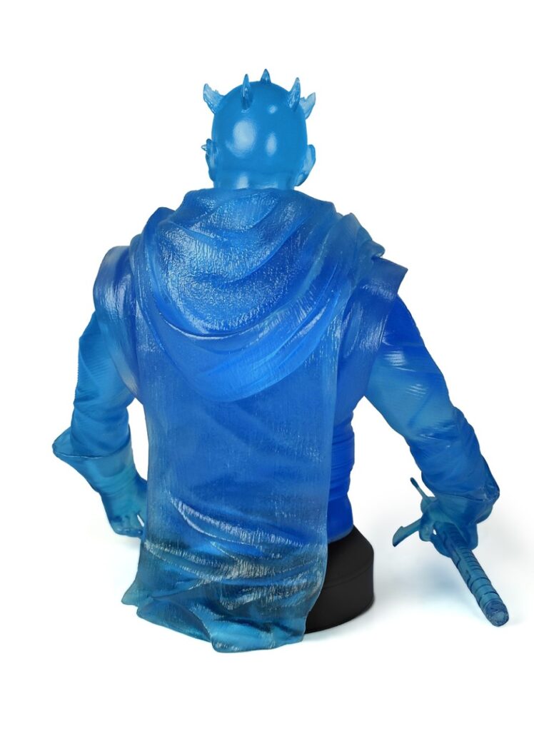 Measuring approximately 7 inches tall, this 1/6 scale mini-bust depicts Maul as he appears in Solo: A Star Wars Story, and is cast in translucent blue resin to simulate the hologram’s effect. Limited to only 500 pieces, it comes packaged in a full-color box with a certificate of authenticity. A gentlegiantltd.com exclusive!