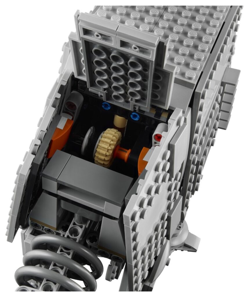 - The AT-AT has a cockpit for 3 LEGO® minifigures, foldout panels, spring-loaded shooters, a speeder bike, winch, bottom hatch so Luke can throw in the thermal detonator element, and more for realistic, creative play.