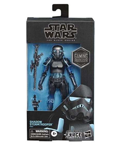 GameStop is getting into the Star Wars Day fun by opening up pre-orders on a new 6″ Black Series figure in their ‘Gaming Greats’ series. The Shadow Stormtrooper, from the game ‘The Force Unleashed’ has the expected black color scheme but with blue highlights and translucent blue parts.