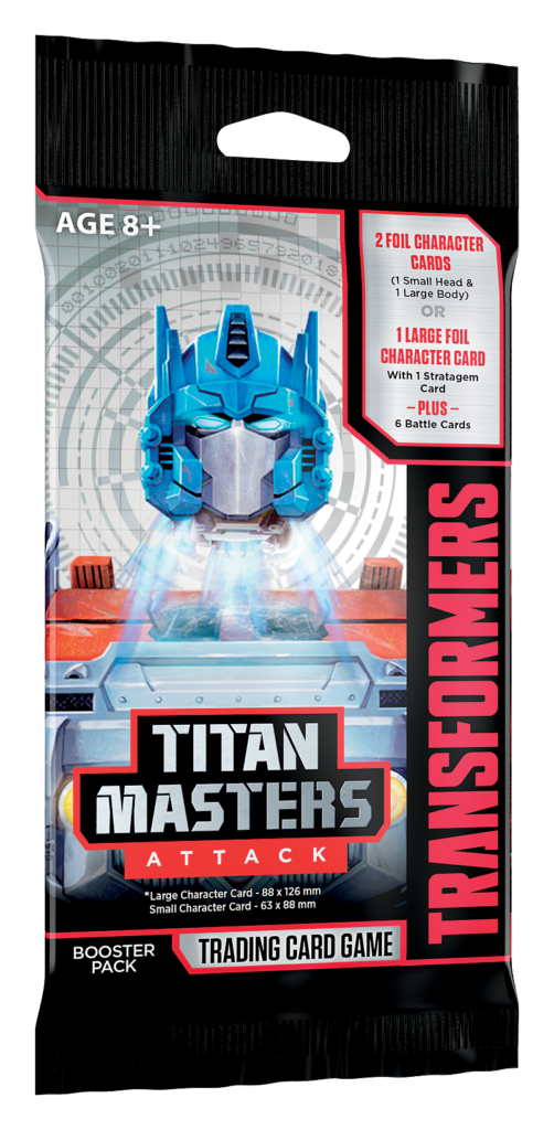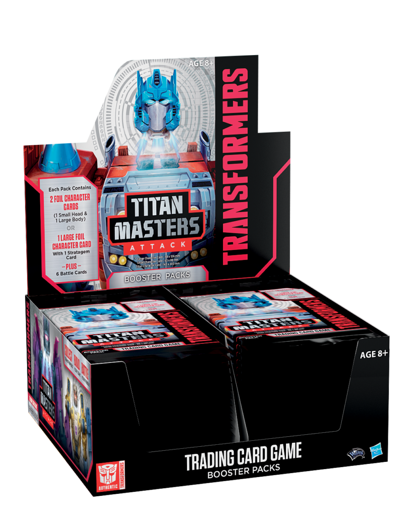 Today, MAGIC: THE GATHERING and TRANSFORMERS released the highly anticipated booster set – TITAN MASTERS ATTACK – for the popular TRANSFORMERS Trading Card Game (TCG).The new booster set contains 46 Character cards (43 of these characters never-before-seen in Transformers TCG), 94 non-Character cards, and 3 Titan-pack Character cards (one Titan pack in each sealed display).