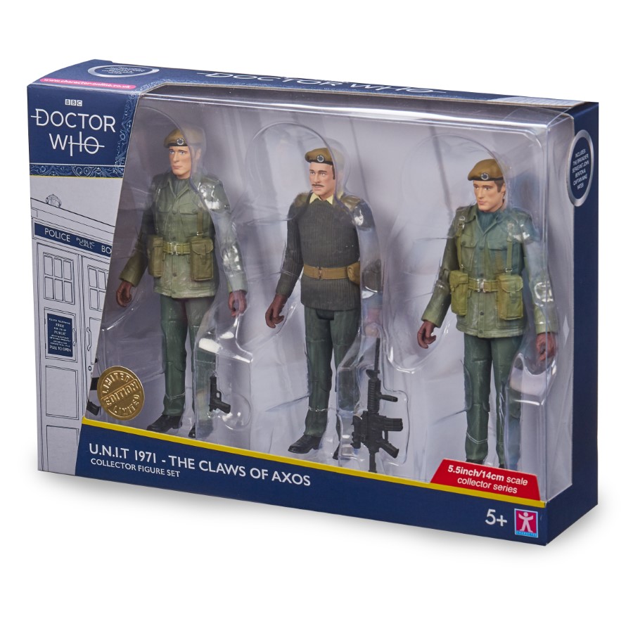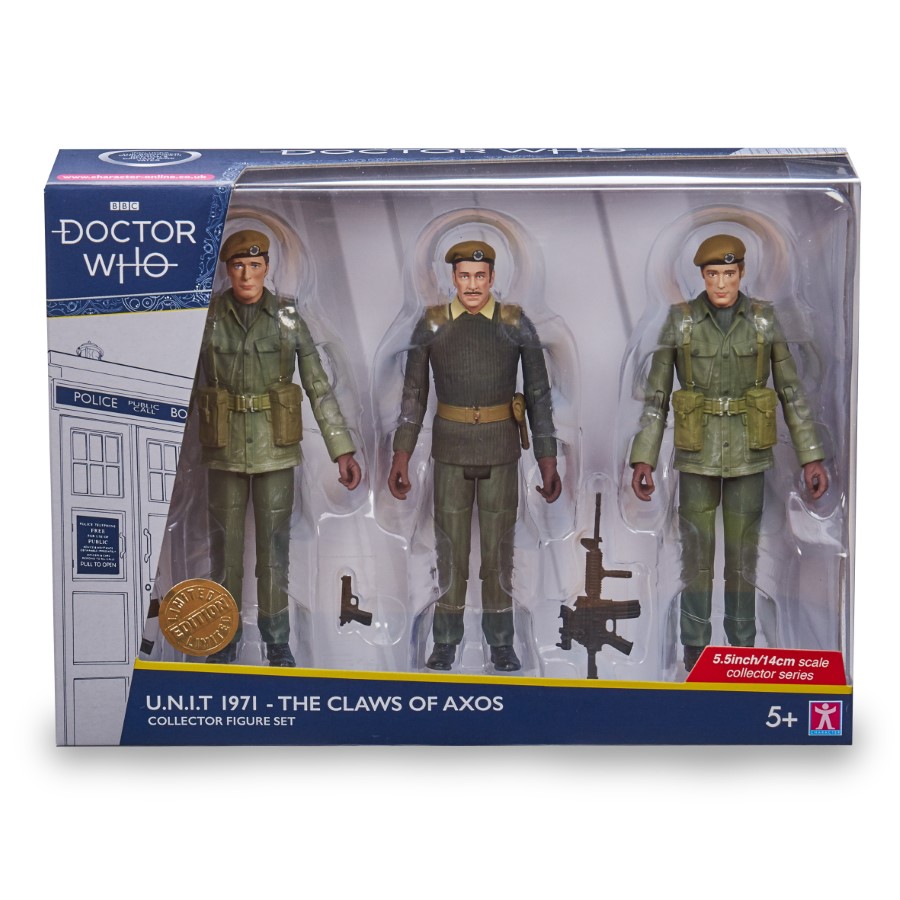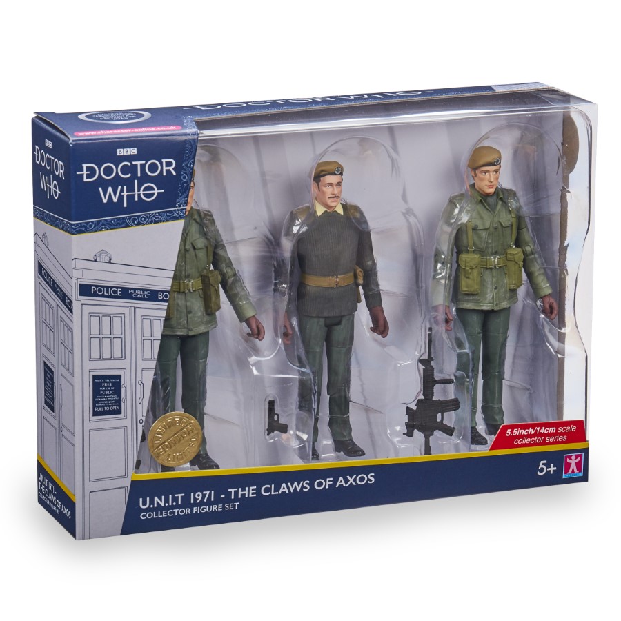 - 1971 U.N.I.T. ‘Claws of Axos’ Set: Featuring Brigadier Lethbridge Stuart, Captain Mike Yates and Sergeant John Benton from 1971’s ‘The Claws of Axos’