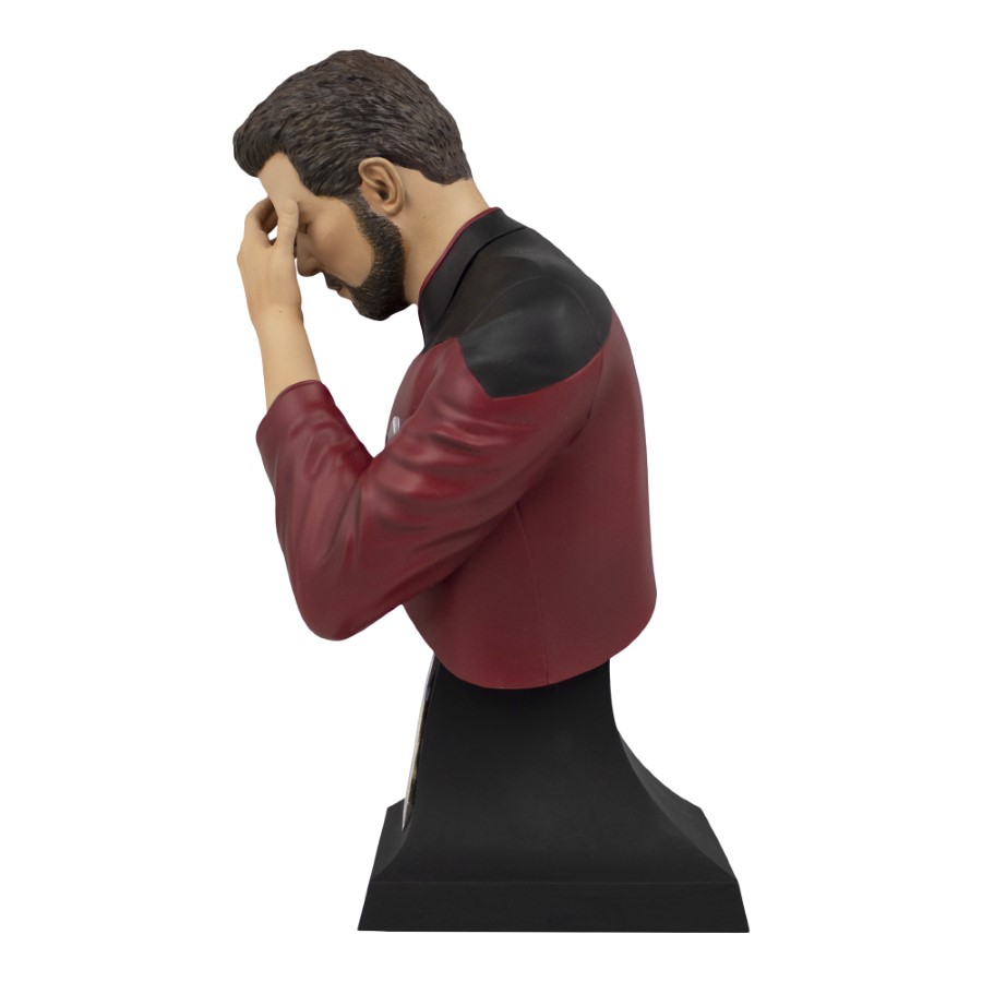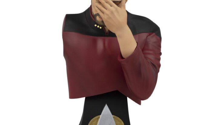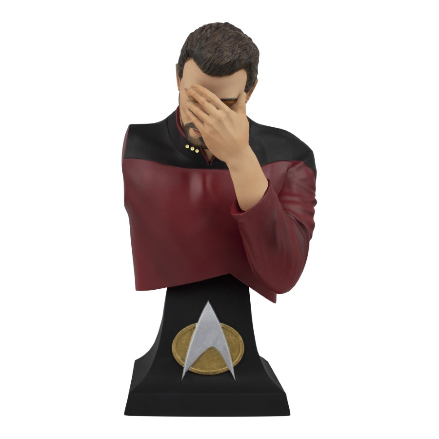 Following their previously announced Previews SDCC Exclusive Captain Picard Facepalm, Icon Heroes has annouced a SDCC Exclusive Commander William Riker Facepalm Mini Bust Paperweight! 2020 has been a frustrating year for many people, and you can express that frustration with this Commander Riker collectible executing the hilariously famous facepalm maneuver. This 7.9 inch mini bust paperweight is limited to just 1701 pieces, features a painted Starfleet insignia on the base, is made of polystone, hand painted, individually numbered, and includes a Certificate of Authenticity. The Riker faceplan mini bust is priced at $90 and available for pre-order here.