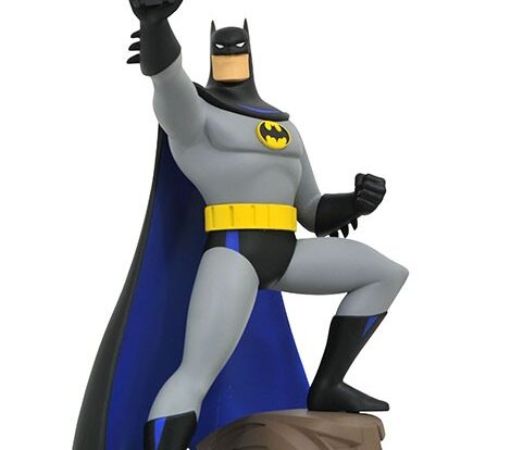 A Diamond Select Toys release! The Dark Knight returns in this all-new Gallery Diorama based on Batman: The Animated Series! Depicting Batman firing his grappling gun, this approximately 10” sculpture is made of high-grade PVC with collectible-quality sculpting and paint applications. Designed by Barry Bradfield, sculpted by Varner Studios. (Item #SEP192496, SRP: $49.99)