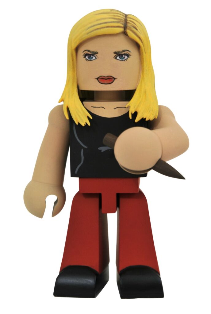 A Diamond Select Toys release! Buffy is back! The fan-favorite vampire drama remains incredibly popular, and now you can collect your favorite characters as part of the Vinimates vinyl figure line! Buffy, Angel and Spike kick off this new series, each standing 4 inches tall and striking a pose from the TV show. Each has an articulated neck for further posing options, and each comes packaged in a full-color window box. Designed by Barry Bradfield.