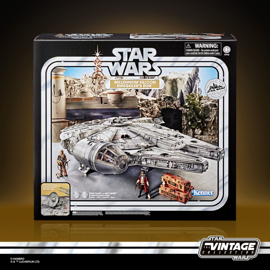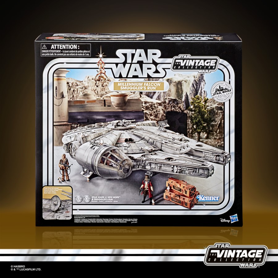 This STAR WARS: THE VINTAGE COLLECTION GALAXY’S EDGE MILLENNIUM FALCON SMUGGLER’S RUN Vehicle is inspired by the starship in STAR WARS: A NEW HOPE, features original Kenner branding, and makes a great gift for STAR WARS collectors and fans. This vehicle