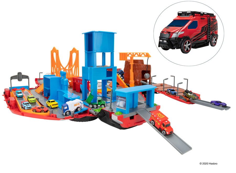 A relaunch of the classic brand would not be complete without the cornerstone of the Micro Machines World, Super Van City. With over 20 action-packed locations and areas of play, this updated take on a classic Micro Machines item transforms from Super Van to Super City and features an entire miniature metropolis that can fold up to create an Airstream-inspired motorhome. Super Van City includes a working bridge, construction site, high rise building, drag strip, tons of ramps and the ability to connect to other playsets. As an added bonus, fans will also receive three exclusive vehicles with the Super Van City playset. The playset retails at $49.99.