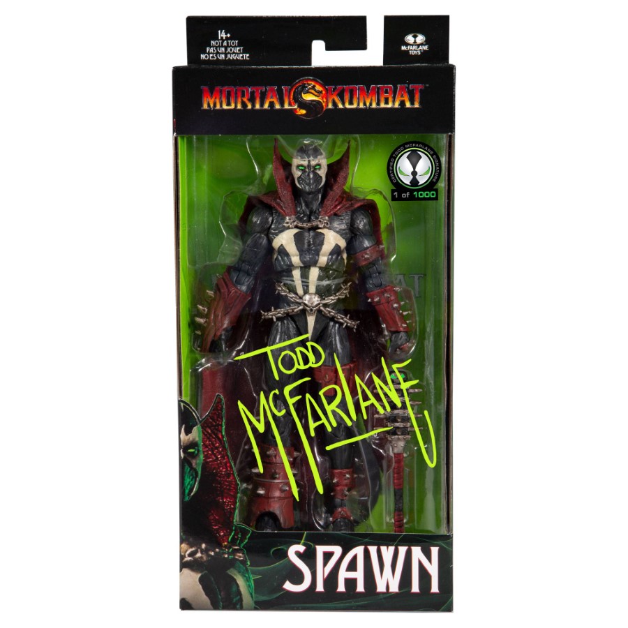 McFarlane Toys has teamed up with Walmart.com to offer collectors and fans a highly limited Mortal Kombat SPAWN action figure, with Mace, hand-signed by SPAWN Creator Todd McFarlane. This action figure comes with a certification of authenticity sticker showing only 1000 pieces have been signed by McFarlane. SPAWN is featured in his default skin, as seen in Mortal Kombat 11 Kombat Pack DLC and is packaged in a Mortal Kombat SPWAN themed window box. This highly limited figure has an SRP of $59.99 and pre-orders start at 2PM ET on 8/7 only on Walmart.com.