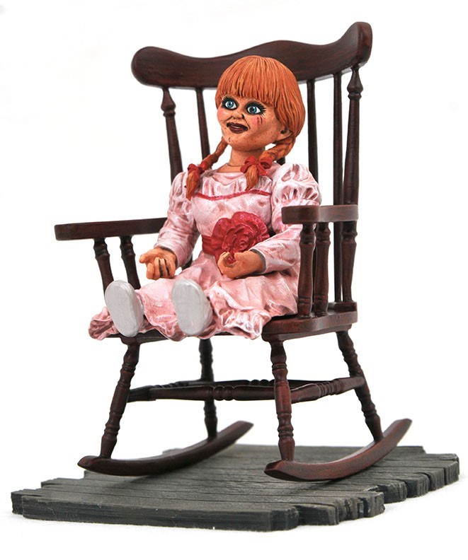 A Diamond Select Toys release! Annabelle is coming home! The Gallery line of PVC Dioramas dives into the world of horror movies with this sculpture based on the Annabelle series! Depicting the doll Annabelle sitting in a rocking chair, this sculpture measures 9 inches tall and features detailed sculpting and paint applications. Packaged in a full-color window box. Designed by Caesar, sculpted by Rocco Tartamella. (Item #DEC192338, SRP: $39.99)