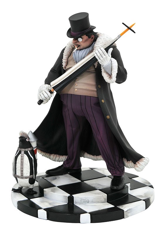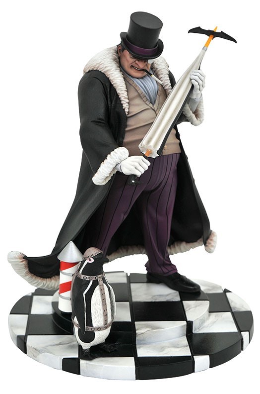 A Diamond Select Toys release! Oswald Cobblepot gets the Gallery treatment in this new diorama of the Penguin! Batman’s feather-loving foe looks menacing with his umbrella piercing a Batarang, and a rocket-propelled penguin by his side. Made of high-quality PVC and featuring detailed sculpting and paint applications, it comes packaged in a full-color window box. Designed by Caesar, sculpted by Alterton. (Item #DEC192332, SRP: $49.99)