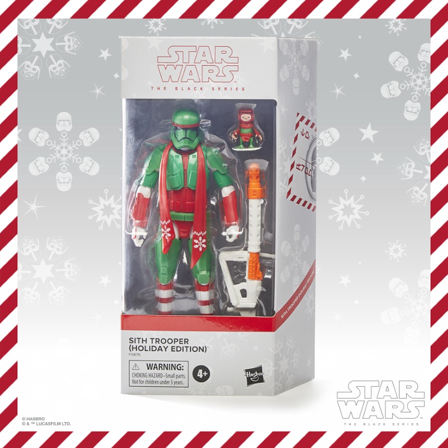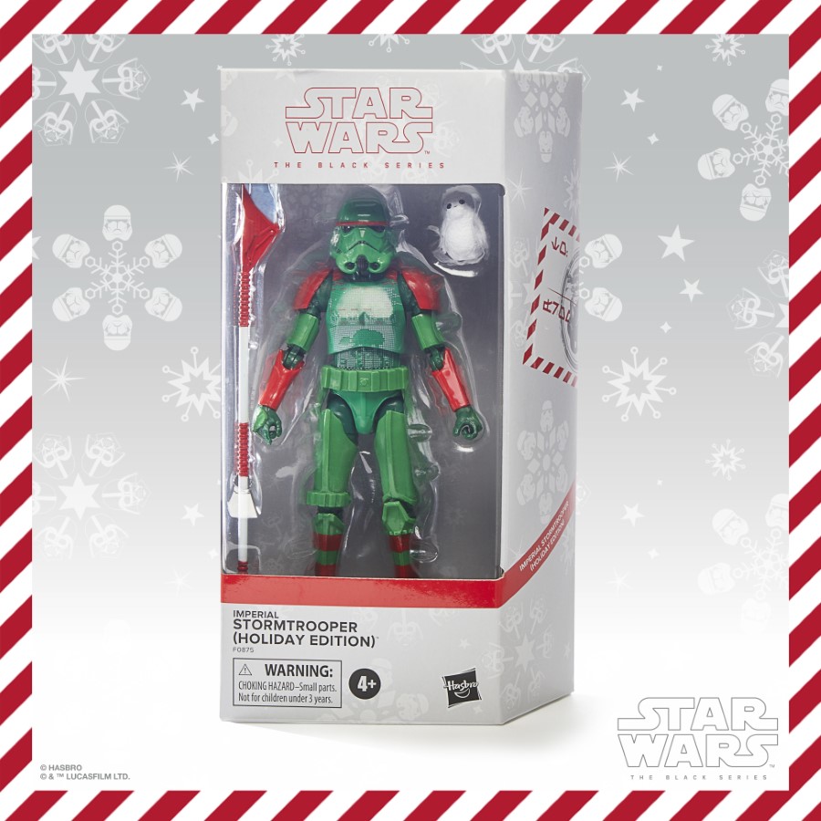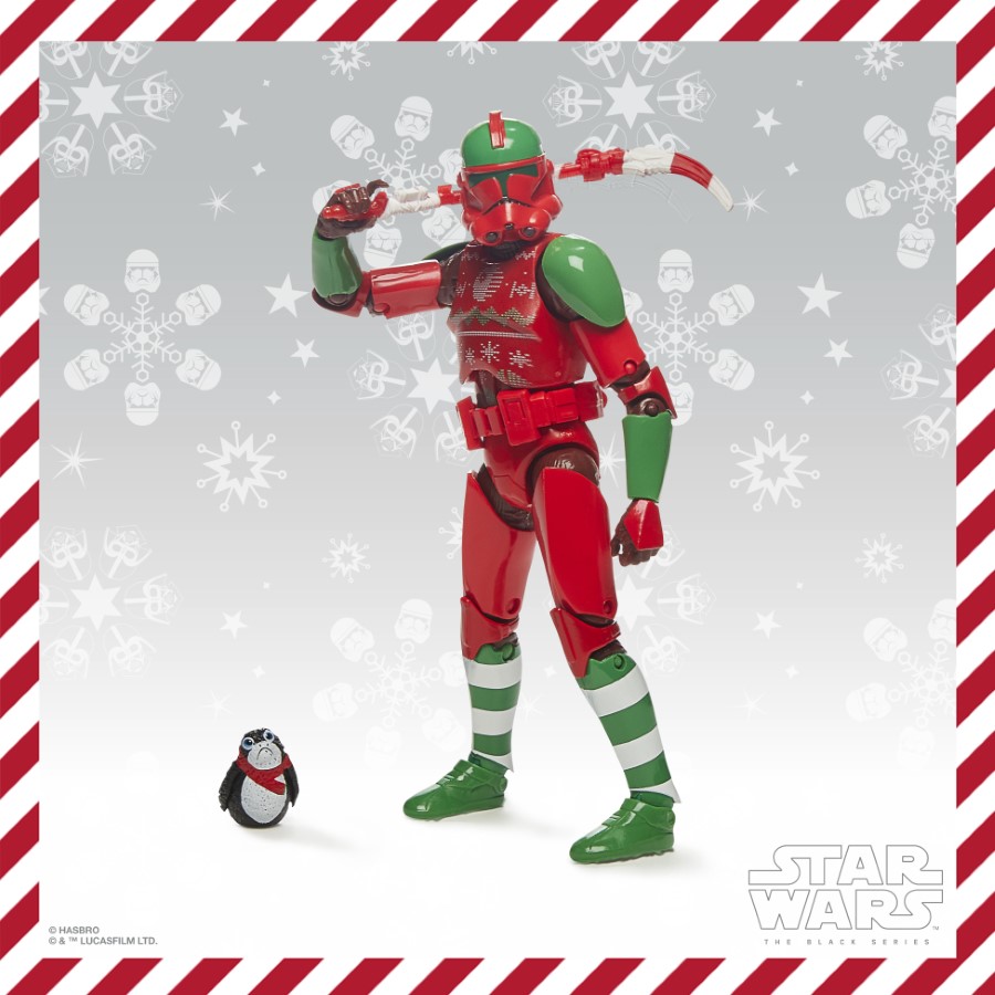 Holiday Collection: Something new this year are a collection of 5 Black Series figures in holiday-themes. From red/green to holiday sweaters, each figure includes a small companion figure. Each figure is available at a different retailer: