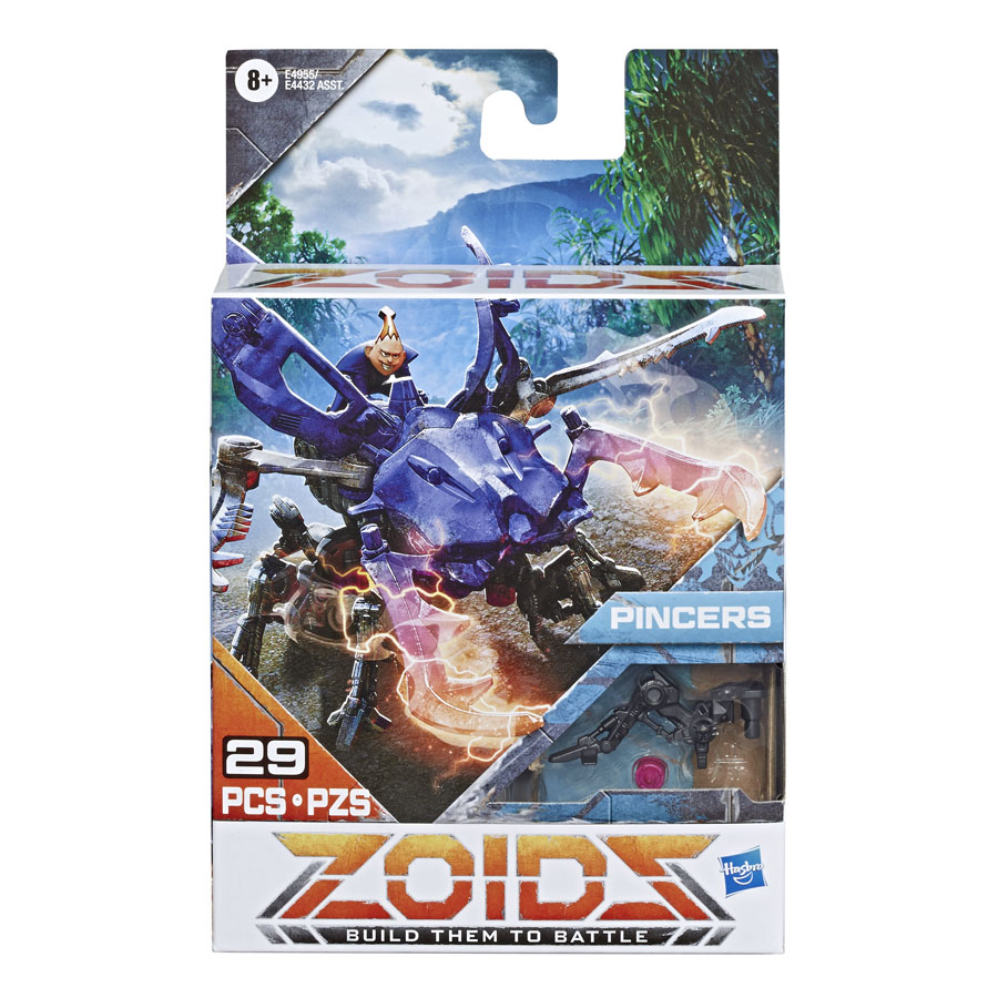 Zoids figures are building toys that battle! This Beta Battlers pack comes with 29 pieces to builda BEETLE-type PINCERS toy. Once built, switch on and watch as he moves with animatronicmotion, ready for battle. As the figure moves, reposition it into a dynamic battle move called a Dark Blast and unleash the Pincer Jab move! This PINCERS BEETLE figure also comes with a detailed Routerfigure that can ride on his back! Each Zoids figure comes with an attachable mini figure of their human partner and a battle mat where Beta Battlers figures can face-off in epic battles (each sold separately, subject to availability).