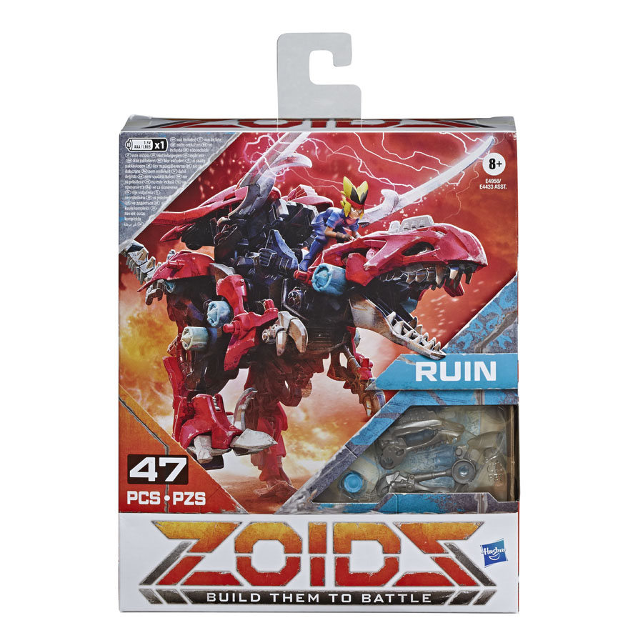 This Mega Battlerspack comes with 45 pieces tobuild a DEINONYCHUS RAPTOR-type RUIN toy. Once built, switch on and watch as he moves with animatronic motion, ready for battle. The toy’s motion automatically unleashes amotorized battle move called Dark Blast. As the Ruin toy moves, his dynamic battle move called Dark Claw will activate! This RUIN DEINONYCHUSRAPTOR figure also comes with a mini Drake figure that can ride on his back!