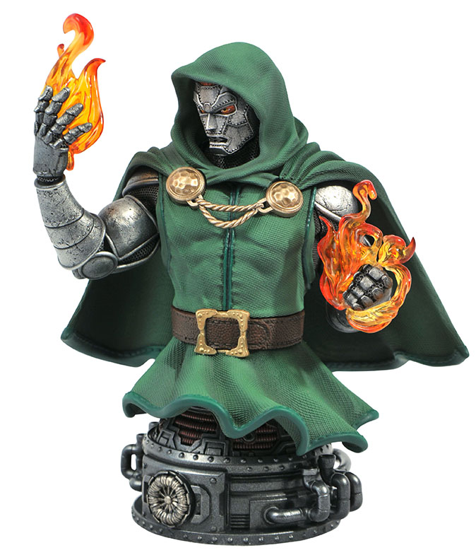 A Diamond Select Toys release! Doctor Doom displays his mystical side in this all-new mini-bust, depicting the Latverian monarch in his trademark armor, wielding fire that appears magical in nature. Measuring approximately 6 inches tall, this mini-bust of Victor Von Doom is limited to only 3,000 pieces and features detailed sculpting and paint applications. It comes packaged in a full-color box with a numbered certificate of authenticity. Designed by Nelson X. Asencio, sculpted by Juan Pitluk! (Item #OCT201997, SRP: $69.99)