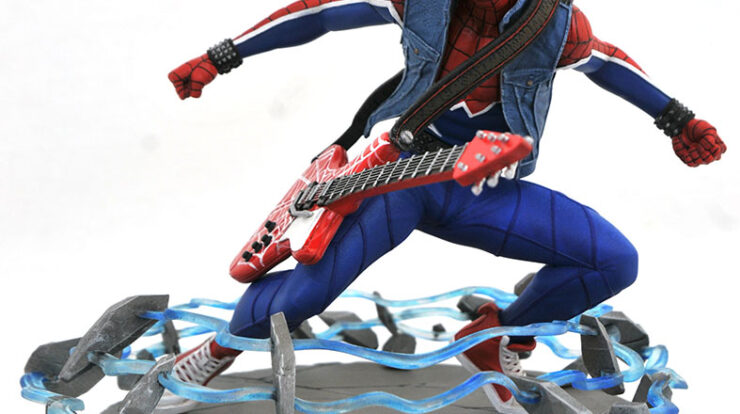 A Diamond Select Toys release! Time to go into the Spider-Verse! Tour the noisy, crowded clubs of New York City with the most hardcore Spider-Man of all, Spider-Punk! Measuring approximately 7 inches tall, this sculpture of the nonconformist hero shows him surrounded by barbed wire, his guitar slung over his shoulder. This Gallery Diorama is made out of high-grade PVC, and features detailed sculpting and paint applications. Packaged in a full-color window box. Designed by Caesar, sculpted by Cortes Studios! Formerly a GameStop exclusive. (Item #OCT202005, SRP: $49.99)